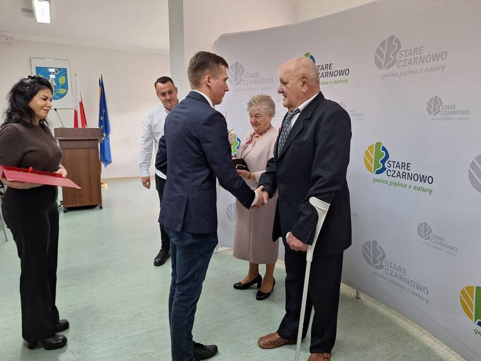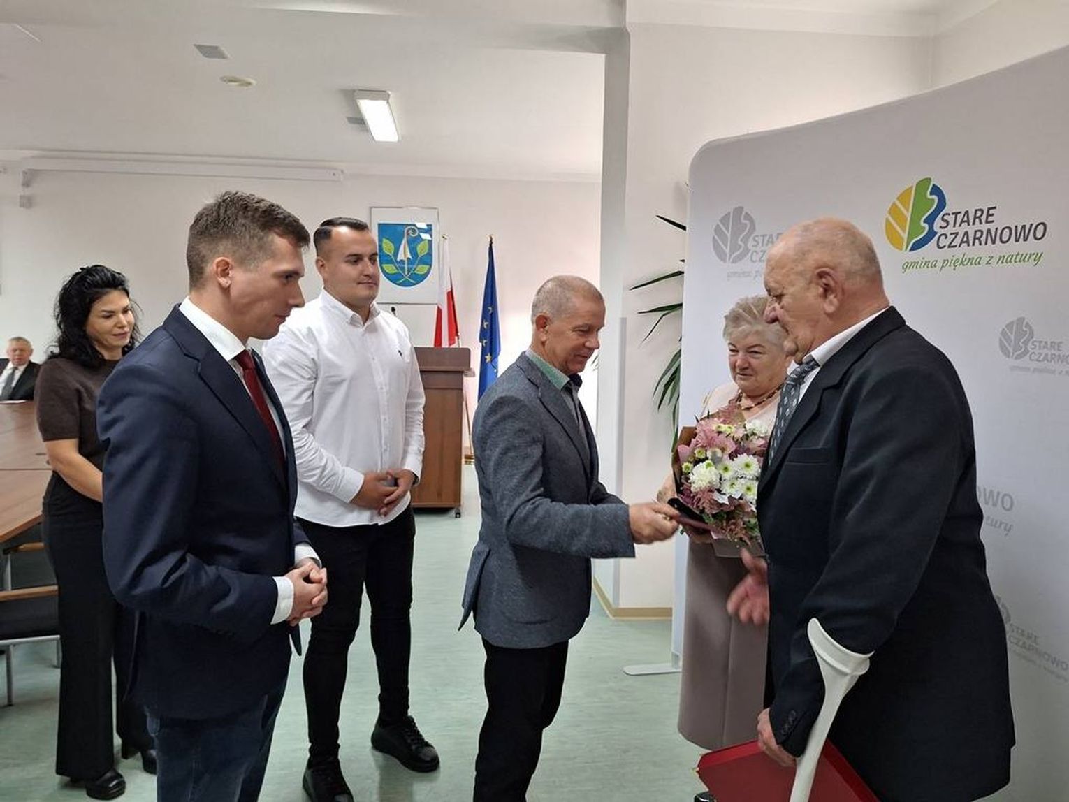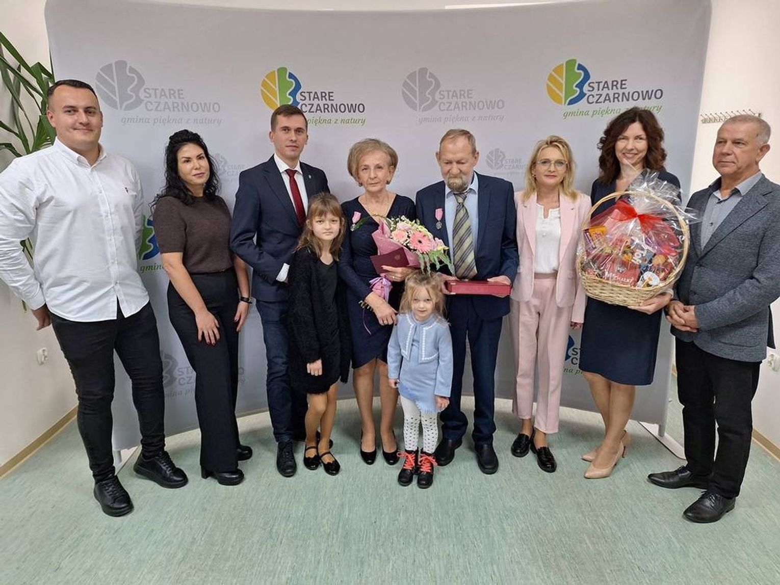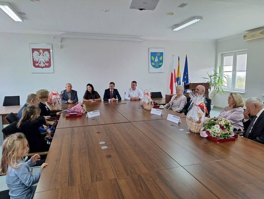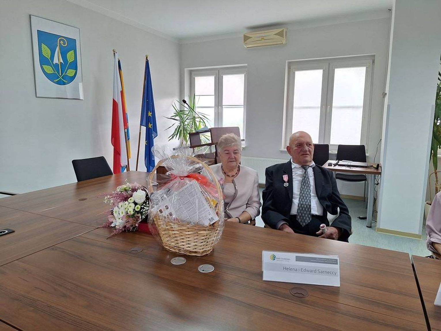 Podczas spotkania nie zabrakło ciepłych słów, serdecznych gratulacji oraz życzeń kolejnych lat spędzonych w zdrowiu, szczęściu i wzajemnej miłości. Oprócz dostojnych jubilatów i ich rodzin, w uroczystości wzięli udział przedstawiciele lokalnych władz, w tym wójt gminy Bartosz Biegus, skarbniczka gminy Klaudia Kacprzyk-Dymek, przewodniczący Rady Gminy Jakub Cymerman, wiceprzewodnicząca Rady Gminy Karolina Serafin oraz radny Waldemar Błażejczak.