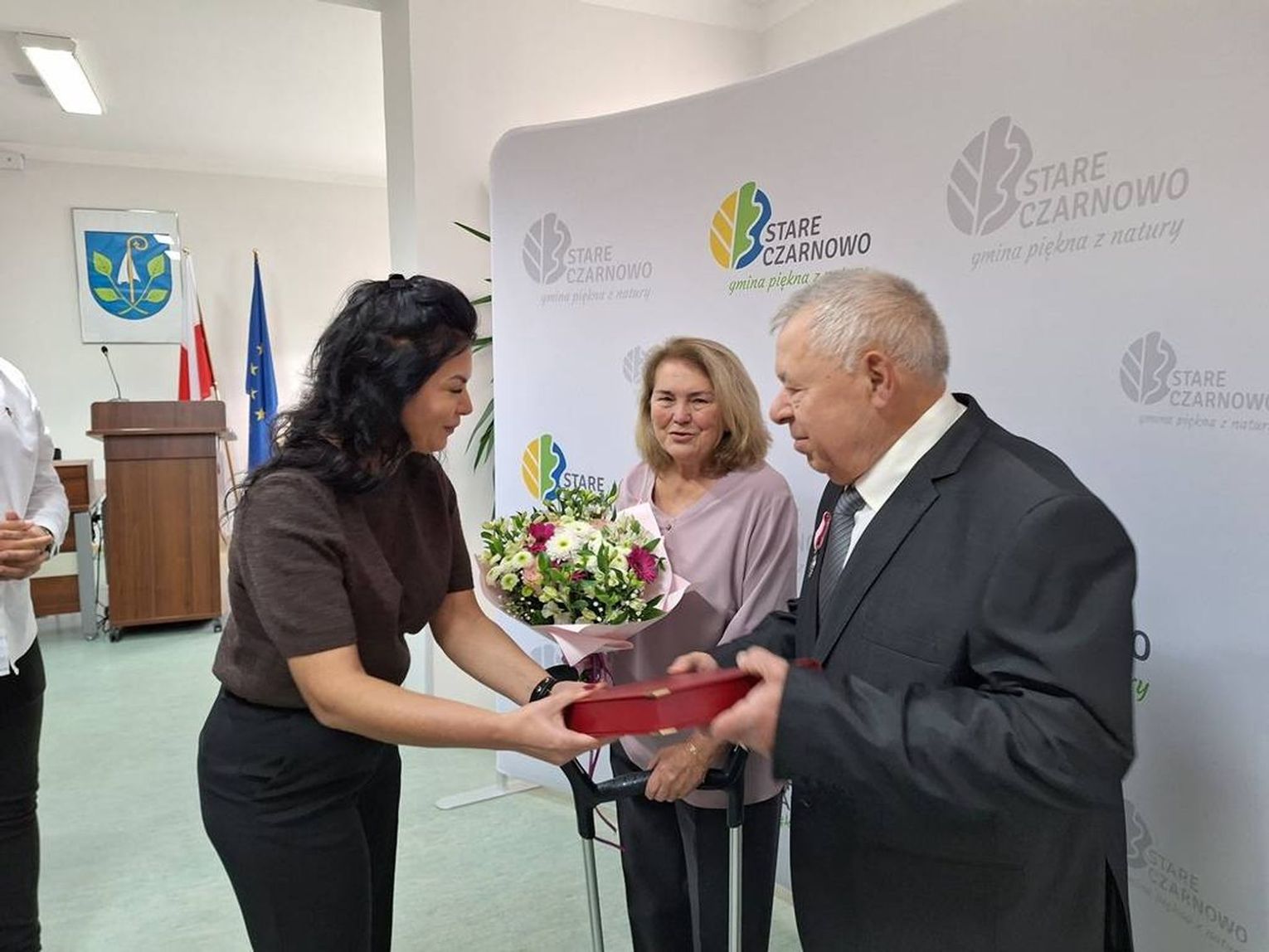 Medale – stylizowane, sześciopromienne, srebrzone gwiazdy z motywem dwóch róż na awersie, będące wyjątkowym wyróżnieniem – wręczono podczas uroczystości zorganizowanej w gminie Stare Czarnowo.