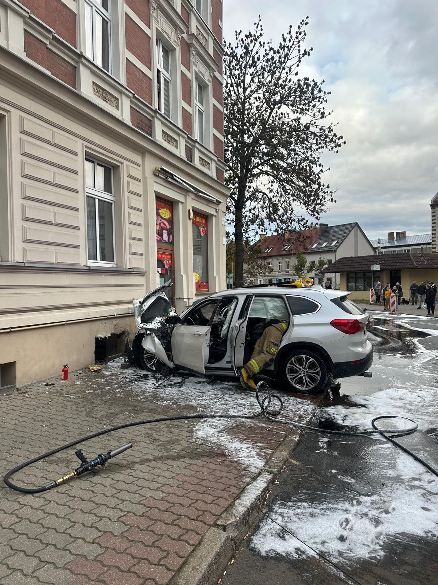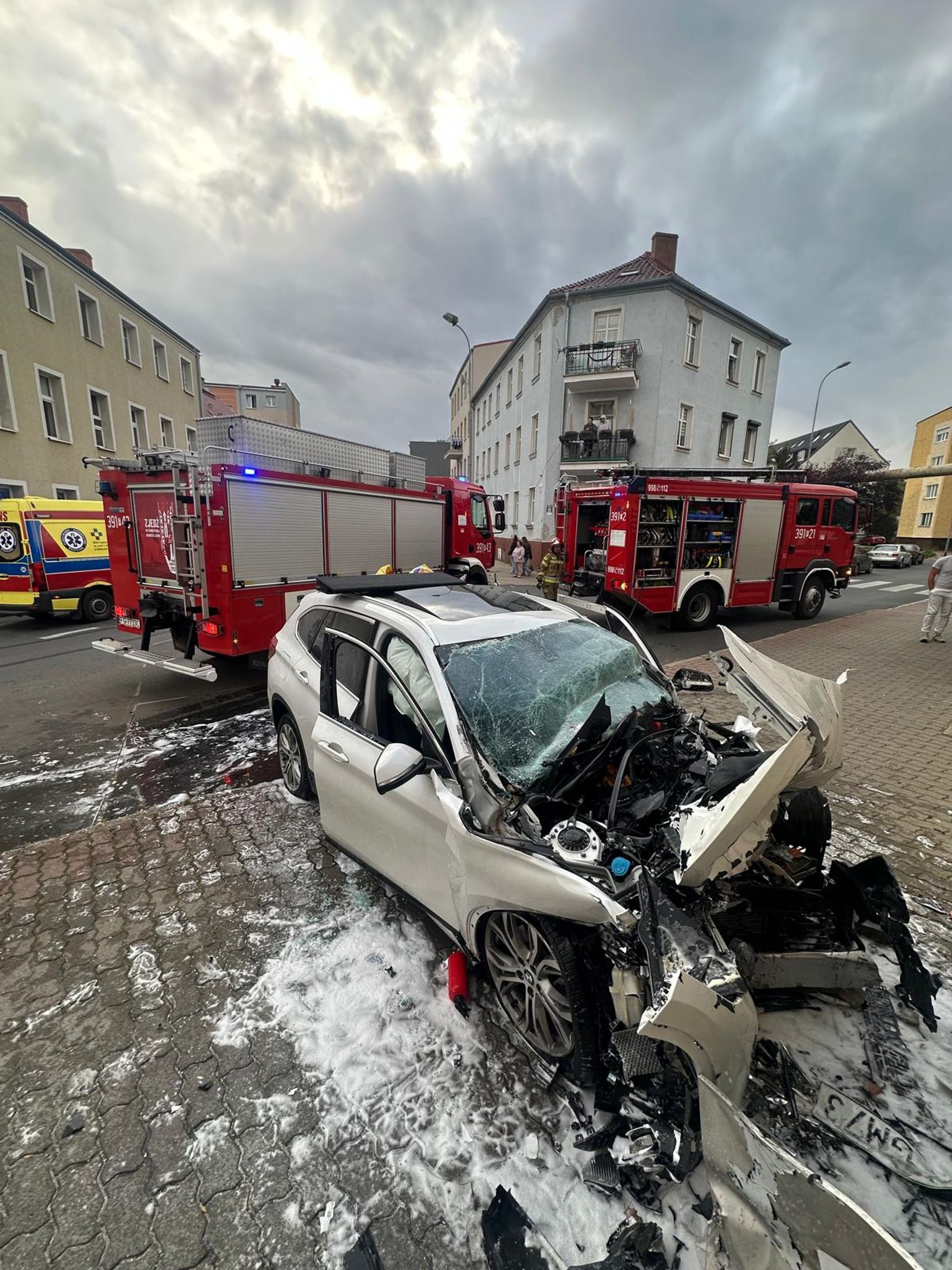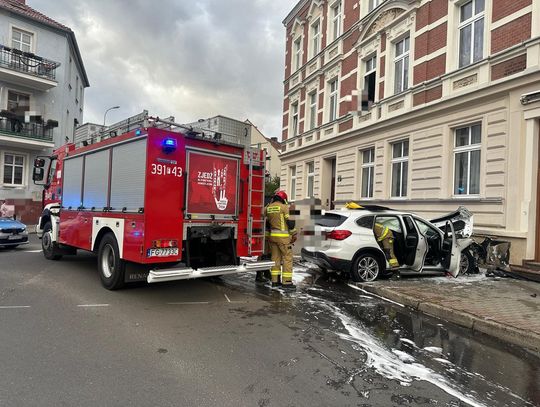 -Do zdarzenia dyżurny operacyjny zadysponował 2 zastępy Jednostki Ratowniczo-Gaśniczej PSP w Słubicach. Po dojeździe straży pożarnej, kierowca pojazdu znajdował się poza samochodem, udzielana była mu pomoc medyczna przez zespół ratownictwa medycznego. Na skutek uderzenia została uszkodzona skrzynka gazowa budynku z zaworem. Działania straży polegały na zabezpieczeniu miejsca zdarzenia, odłączeniu akumulatora w samochodzie, odłączeniu dopływu gazu w budynku oraz pokryciu komory silnika pianą ciężką - kpt. Mateusz Maćkowiak z PSP Słubice.