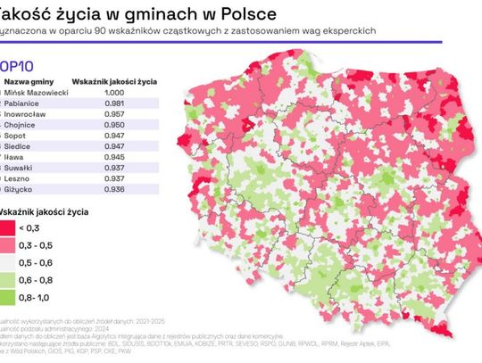 Pod względem jakości życia w gminach na czele znajduje się Mińsk Mazowiecki, który wyprzedził Pabianice i Inowrocław.