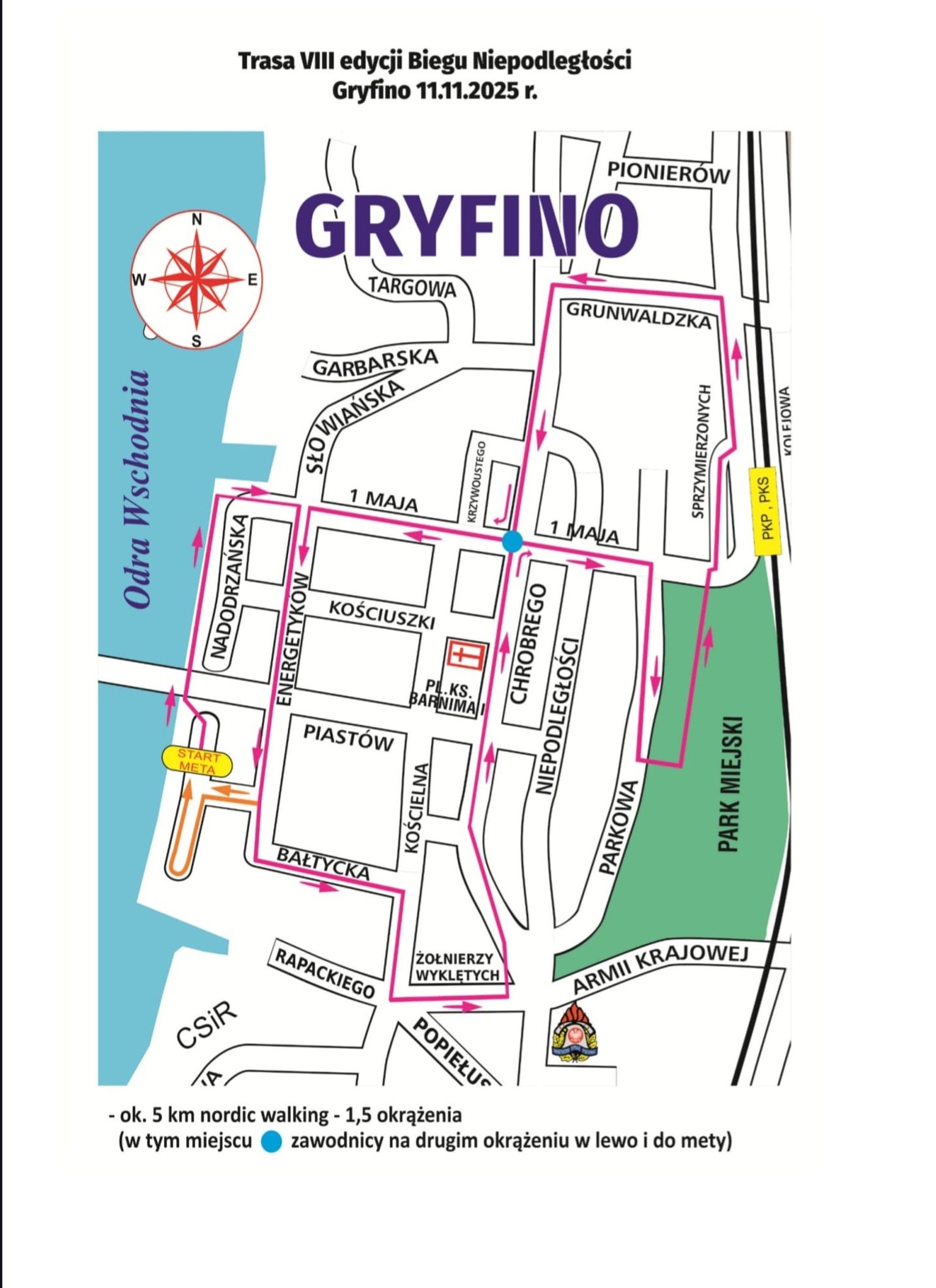 W jego ramach odbędzie się bieg 5 km i marsz nordic walking 5 km na trasie prowadzącej ulicami centrum Gryfina. Start do biegu poprzedzony zostanie wspólnym odśpiewaniem hymnu narodowego.