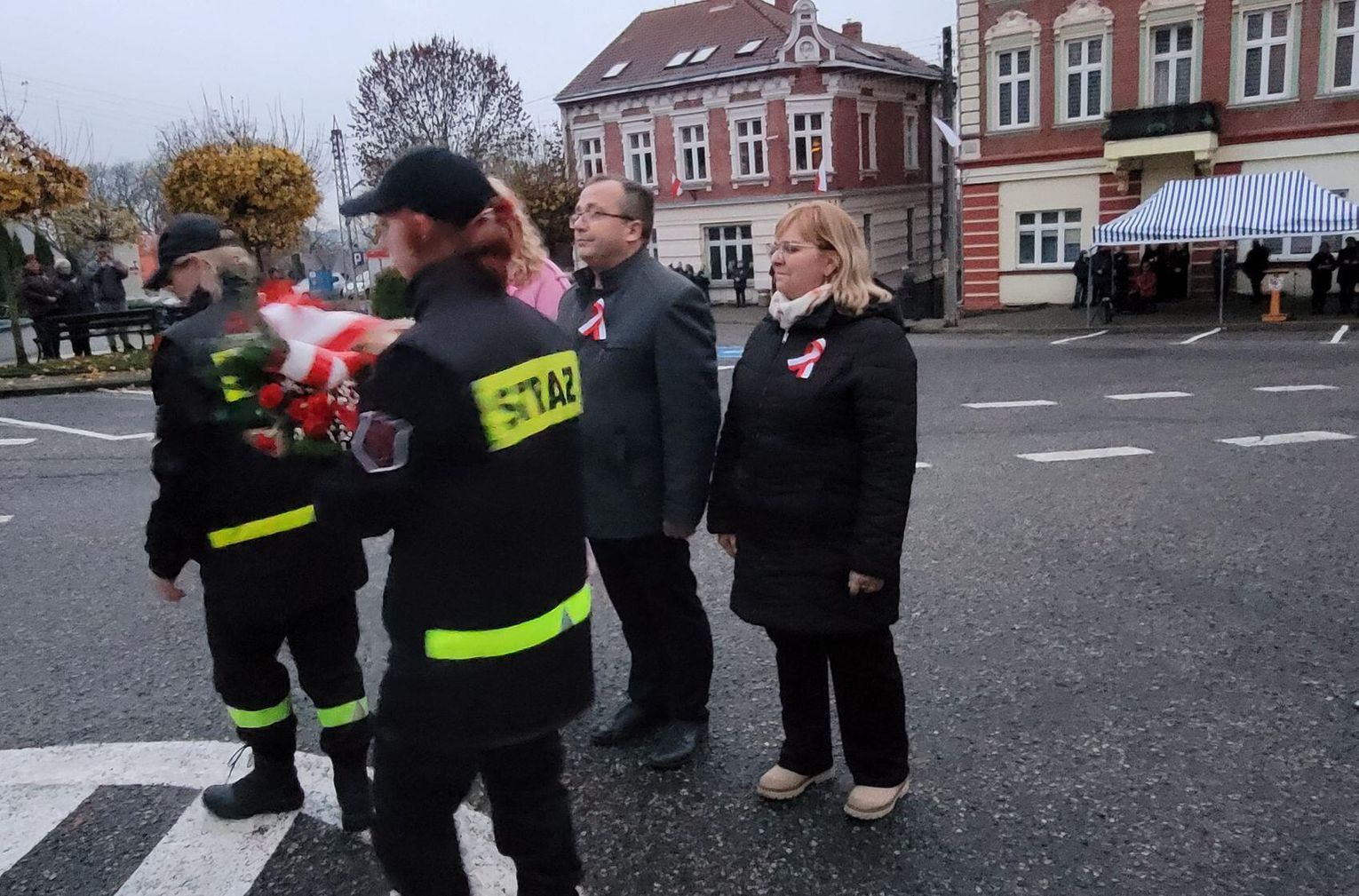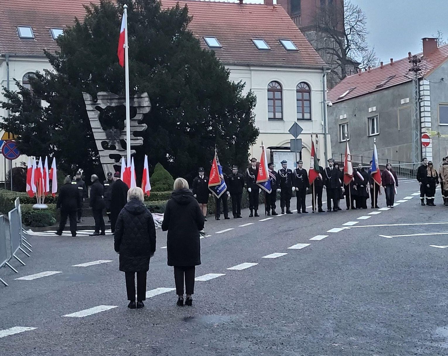 Po nabożeństwie zebrani udali się na plac Wolności, gdzie nastąpiło tradycyjne złożenie wiązanek okolicznościowych pod pomnikiem. Głos zabrała starosta powiatu gryfińskiego, Ewa Dudar. Na zakończenie oficjalnej części burmistrz Piotr Głowniak podziękował za przybycie i podkreślił wagę zgody narodowej w dzisiejszych czasach, nawiązując do dziedzictwa Niepodległej.