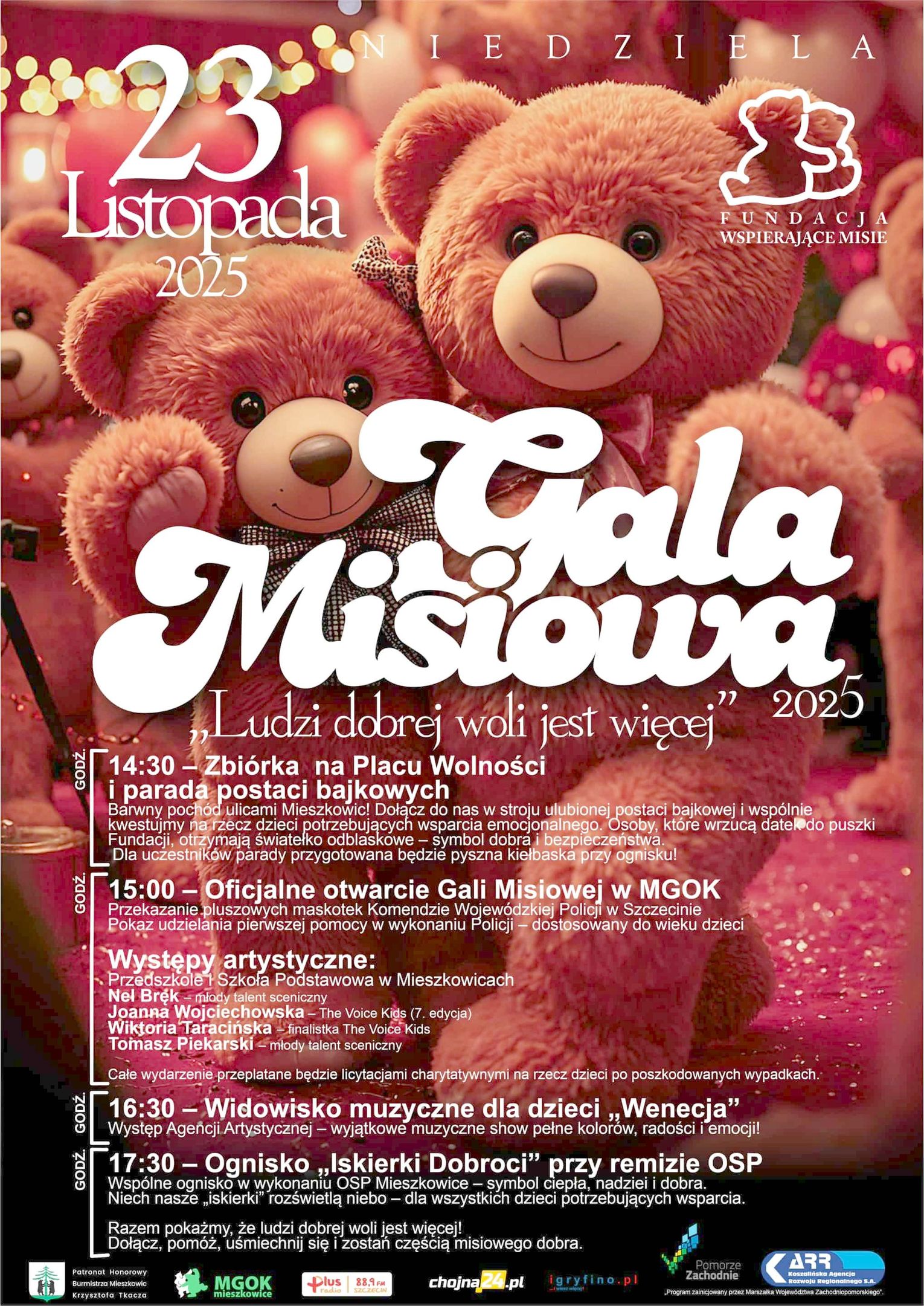 Najważniejszym i najbardziej wzruszającym momentem Gali będzie czyn, który ma ogromne znaczenie dla dzieci w kryzysie. Podczas wydarzenia nastąpi przekazanie kolejnych 500 pluszaków Komendzie Wojewódzkiej Policji w Szczecinie. Te misie trafią do radiowozów, aby służyć jako „apteczki pierwszego wsparcia emocjonalnego”.