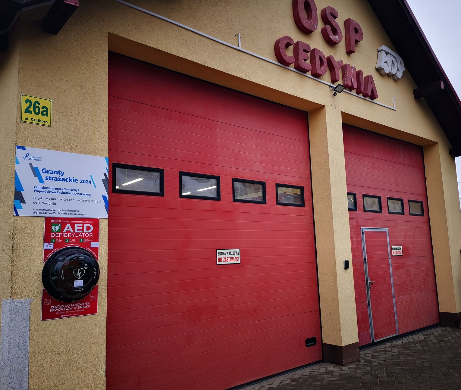 Montaż defibrylatora AED to bardzo ważny i praktyczny efekt realizacji projektu „Moc Małych Społeczności – Społeczność Gminy Cedynia odporna na kryzysy”. W ramach tego przedsięwzięcia strażacy z OSP KSRG Cedynia przeprowadzili dla mieszkańców szereg szkoleń z pierwszej pomocy i reagowania w sytuacjach zagrożenia.