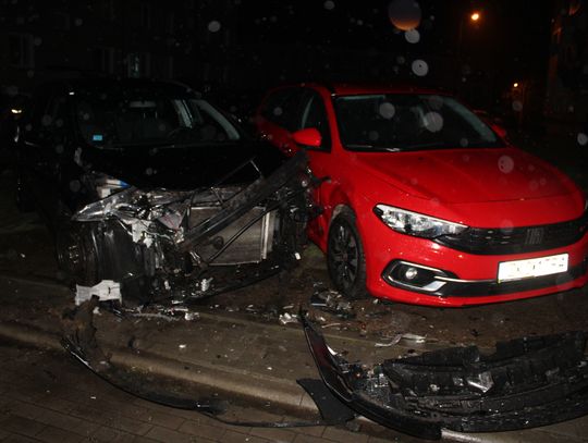 Ta skrajnie nieodpowiedzialna "zabawa" na drodze zakończyła się, gdy 28-latek stracił panowanie nad pojazdem. Samochód uderzył z impetem w dwa prawidłowo zaparkowane pojazdy, powodując ich poważne uszkodzenia.