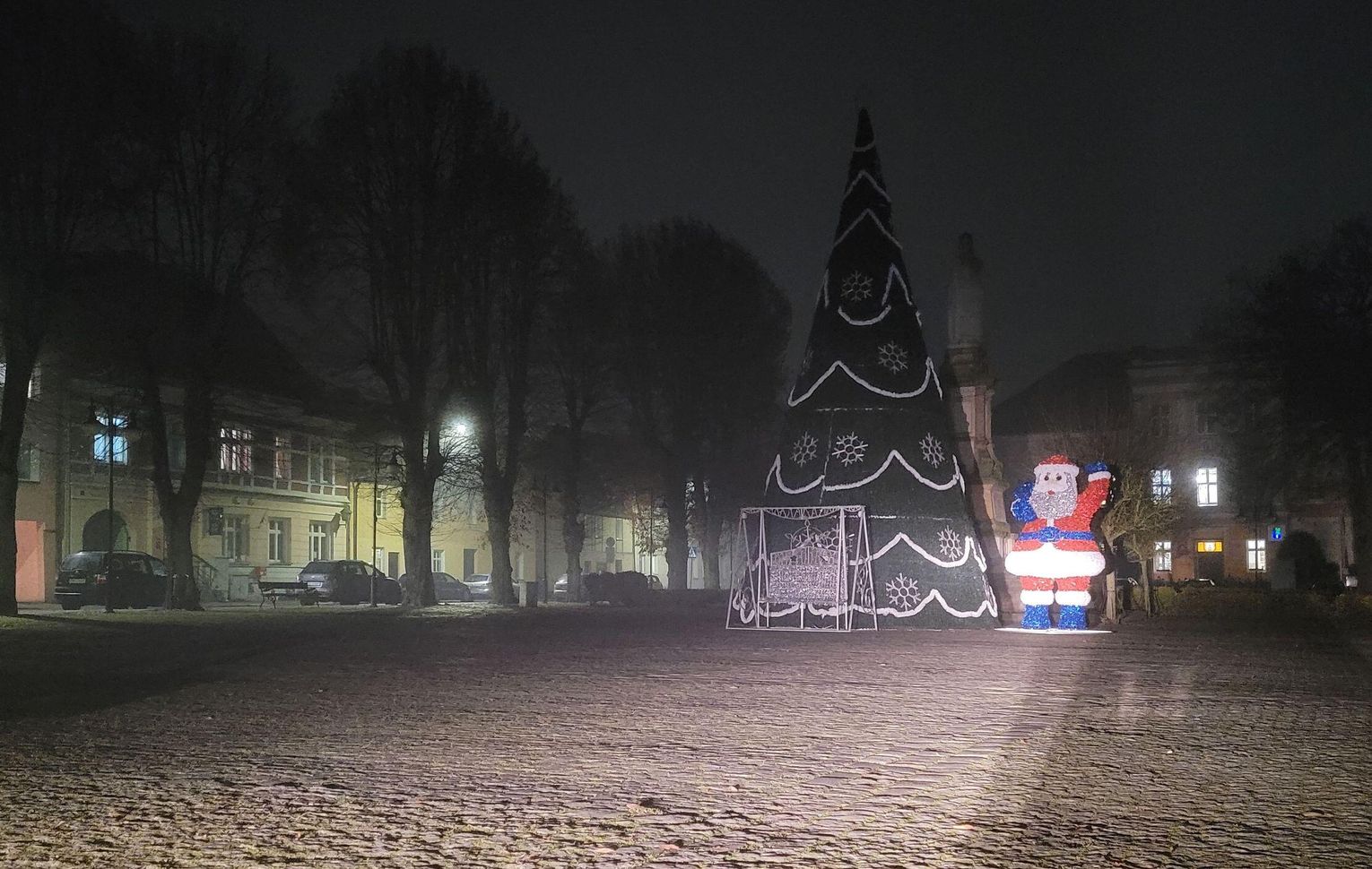 Choć wystrój świąteczny, podobny do tego z lat ubiegłych, jest już zamontowany – w tym wysoka choinka i figura mikołaja – wieczorem ledwo majaczy w ciemności. Lokalni obserwatorzy zwracają uwagę na nietypowe ustawienie postaci mikołaja, który odwrócony jest tyłem do pomnika Mieszka I.