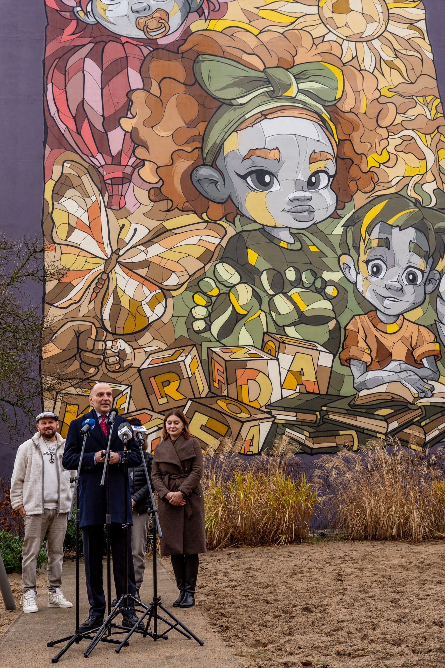– Mural powstał w ramach IV Tygodnia Praw Dziecka, który z wielką dumą objąłem swoim patronatem – mówi Adam Rudawski, wojewoda zachodniopomorski. – Każdy jego element niesie znaczenie, tworząc wspólną opowieść o dzieciństwie, radości, nauce i rozwoju. Jego tematem przewodnim są „Równe szanse”, bo każde dziecko bez względu na wiek, pochodzenie czy temperament powinno być szanowane, kochane i traktowane z należytą uwagą oraz wyrozumiałością. Mam nadzieję, że to dzieło będzie o tym zawsze przypominać.