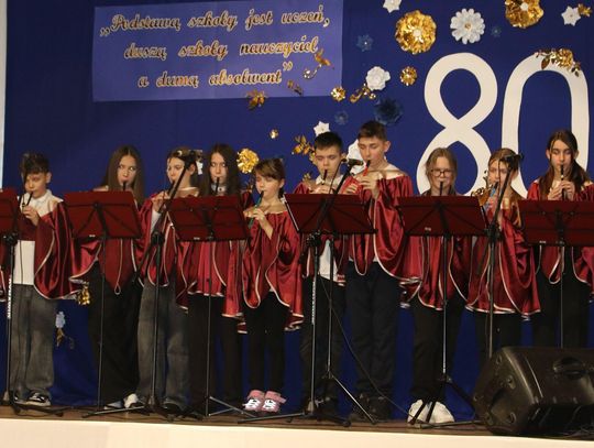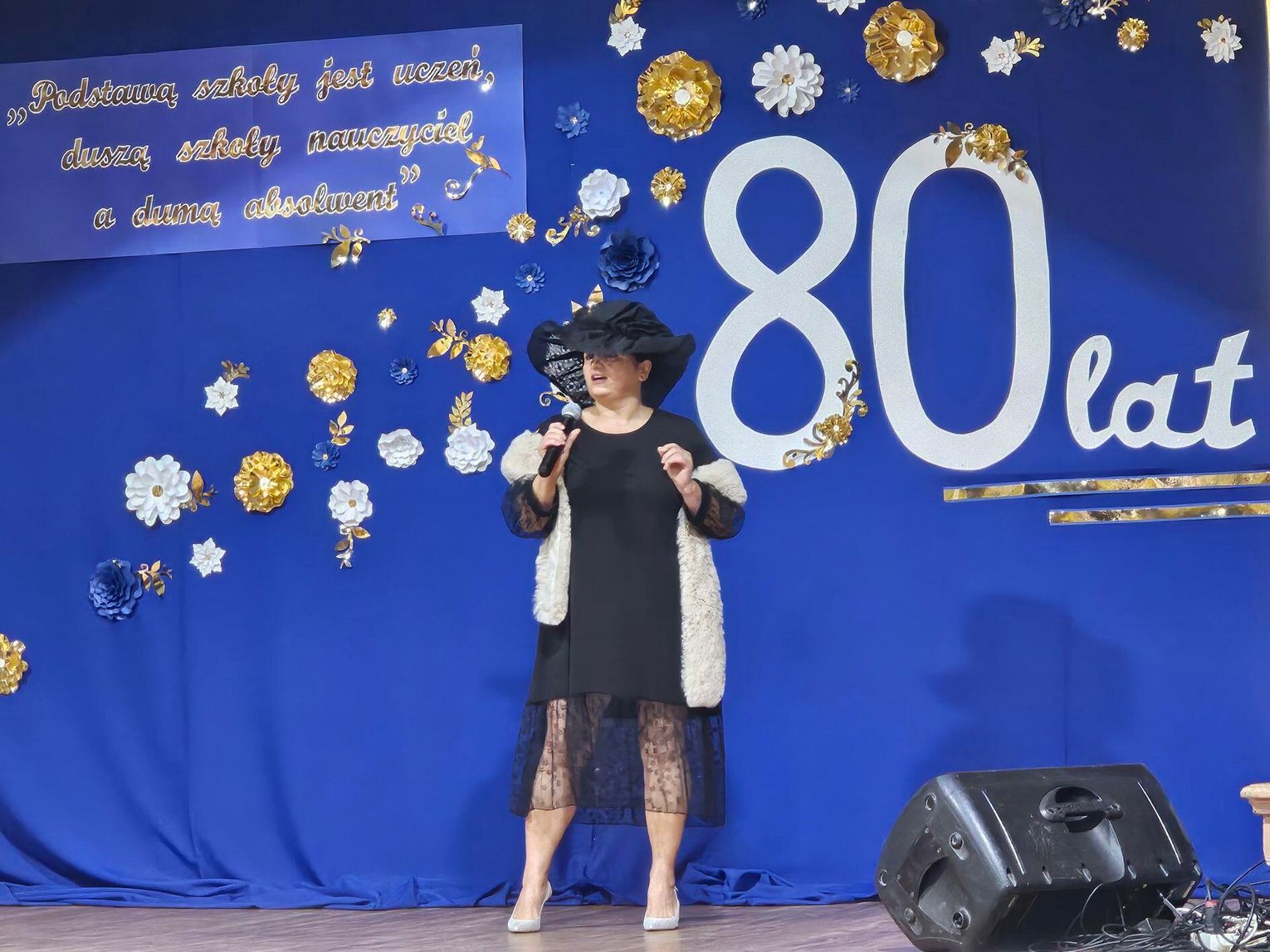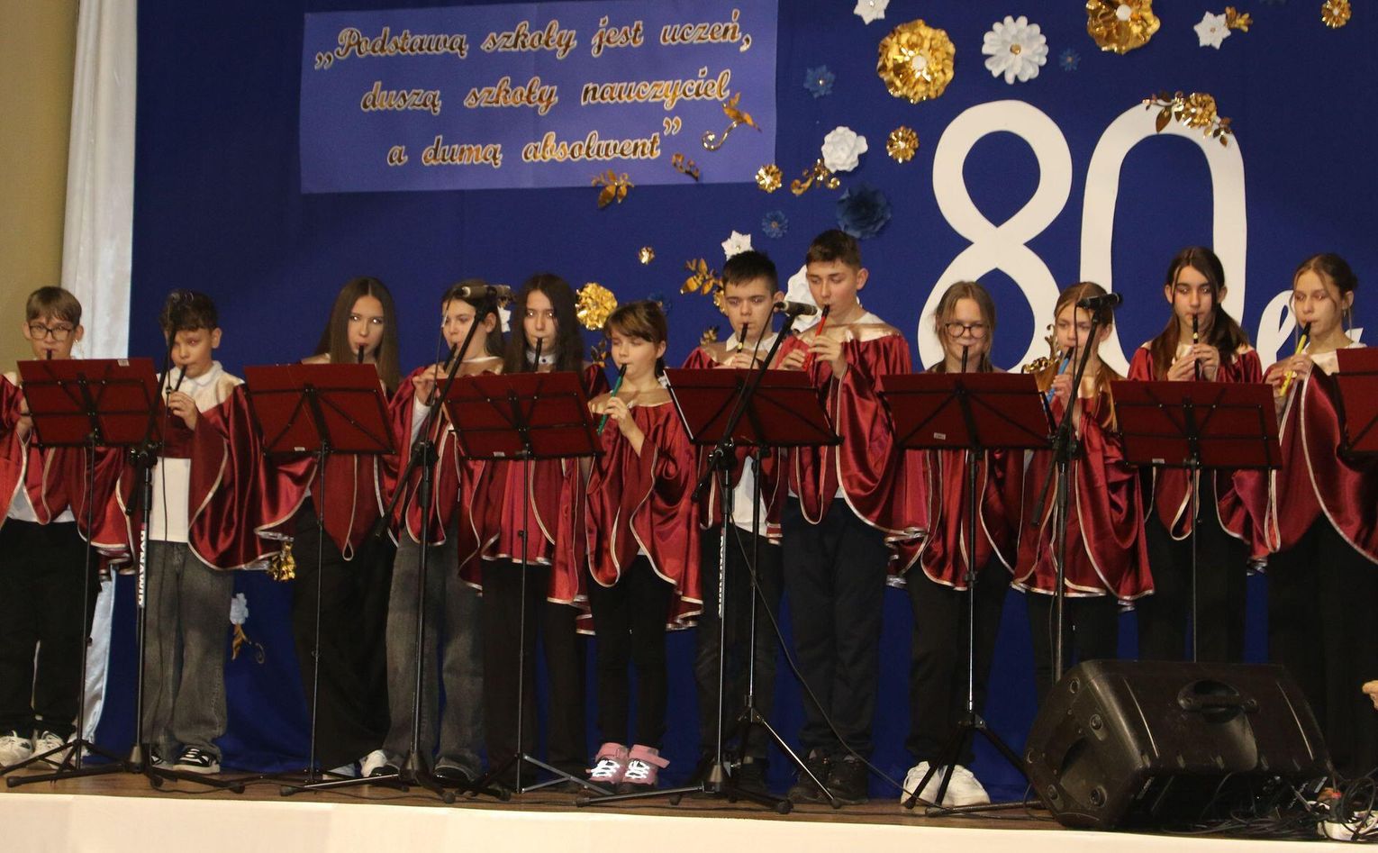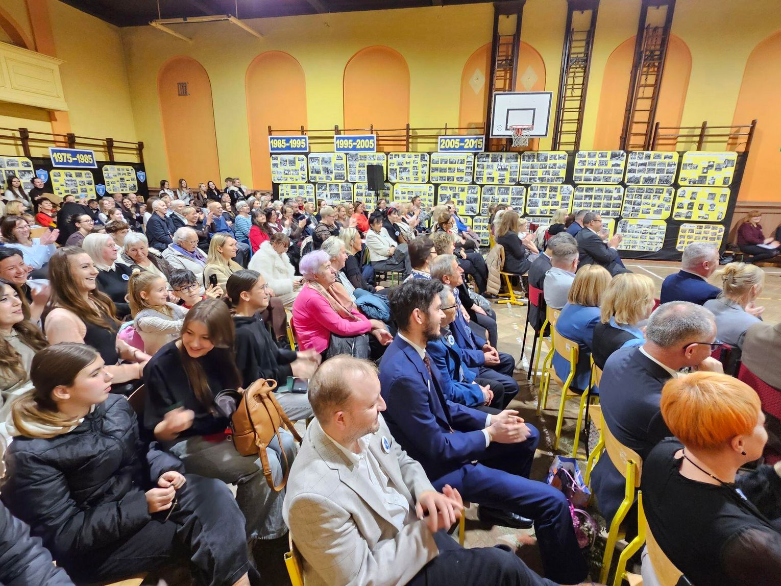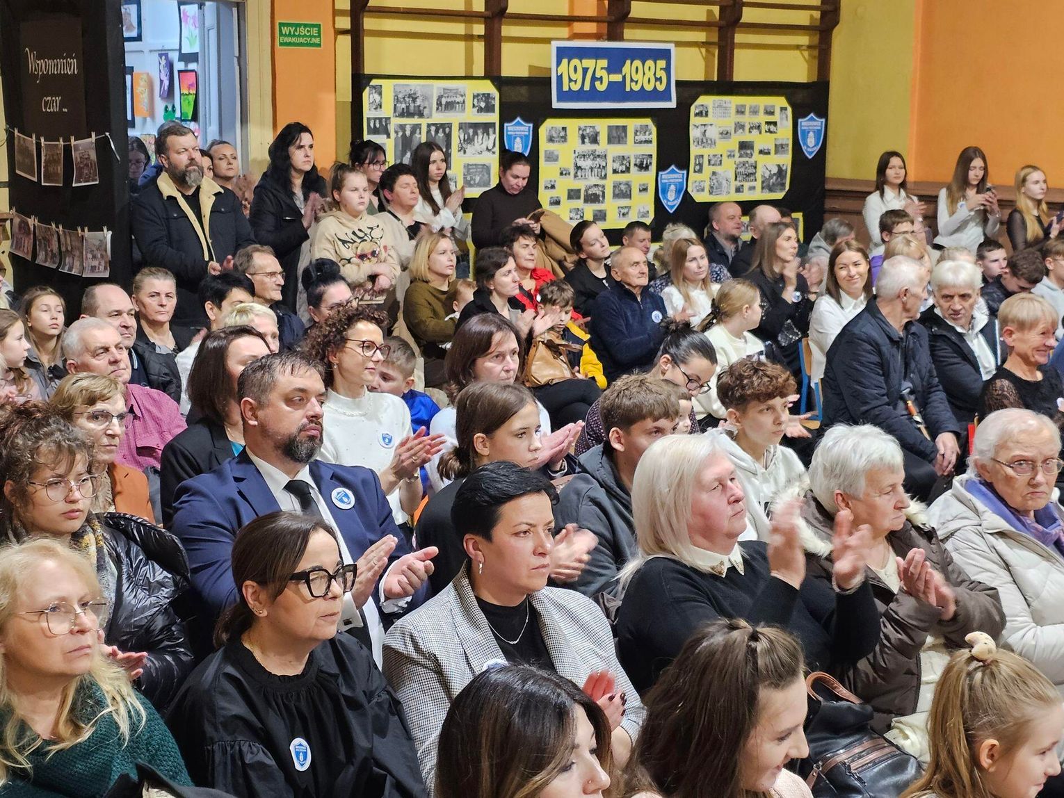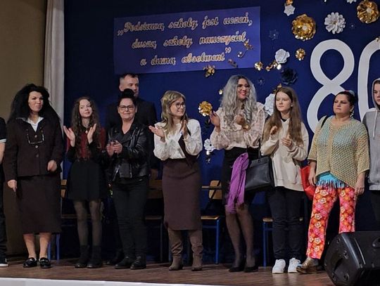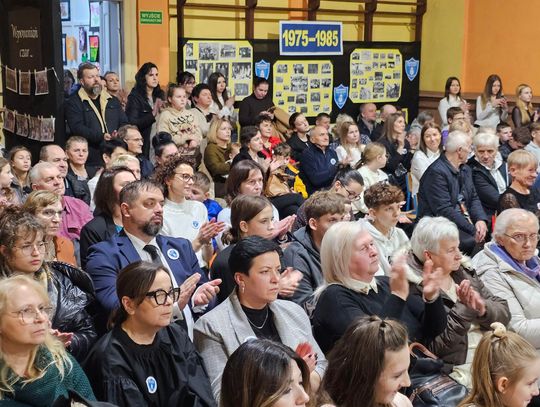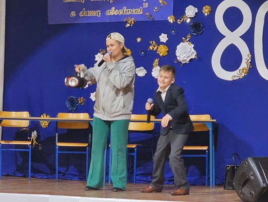 Uroczystość rozpoczęła się symboliczną podróżą do przeszłości. Rys historyczny szkoły przedstawił uczeń Mikołaj Lisowski, który przypomniał kluczowe wydarzenia i przemiany, dzięki którym placówka rozwijała się przez osiem dekad — od pierwszych powojennych lat po współczesność.