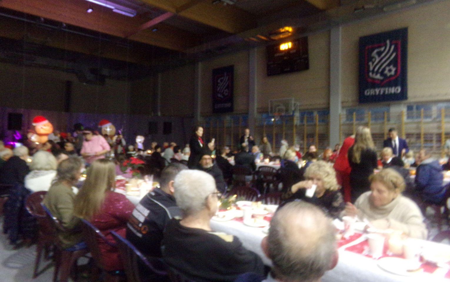 „W śpieszącym się czasie zmienił się świat i zmienili się ludzie. Nie zmieniła się jedynie trwająca od wieków tradycja obchodzenia bożonarodzeniowych świąt” – te słowa najlepiej oddają atmosferę dzisiejszego wydarzenia. Hala sportowa, na co dzień kojarzona z emocjami czysto sportowymi, przeszła całkowitą metamorfozę. Dzięki świątecznym dekoracjom, blaskowi choinek i uroczyście nakrytym stołom, surowe wnętrze zamieniło się w przytulną, pełną ciepła przestrzeń.
