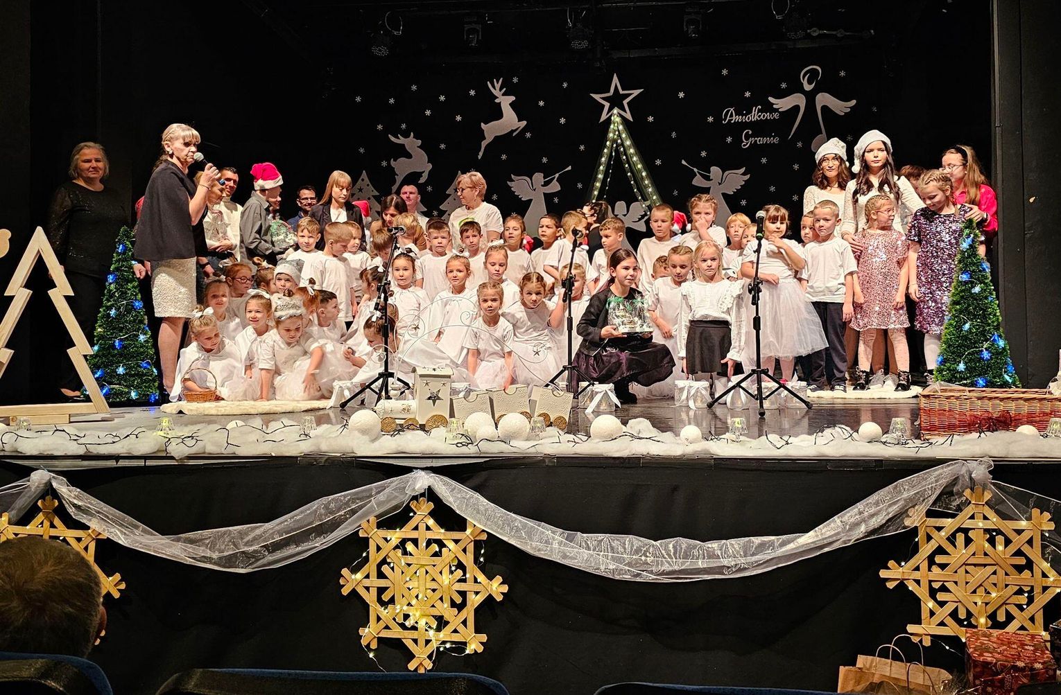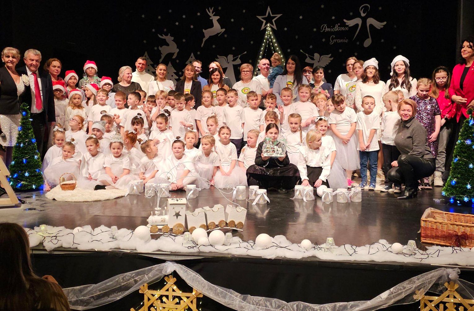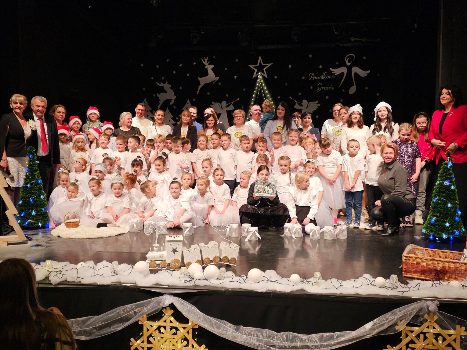 Z wyrazami wdzięczności dziękuję również nauczycielom oraz całemu personelowi, którzy z wielkim oddaniem pomogli w dekorowaniu sali koncertowej. Dzięki Waszej kreatywności, pracy i dbałości o każdy szczegół powstała wyjątkowa, ciepła i świąteczna przestrzeń, która idealnie oddała ducha „Aniołkowego Grania”.