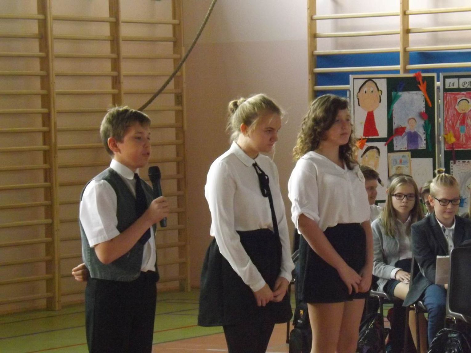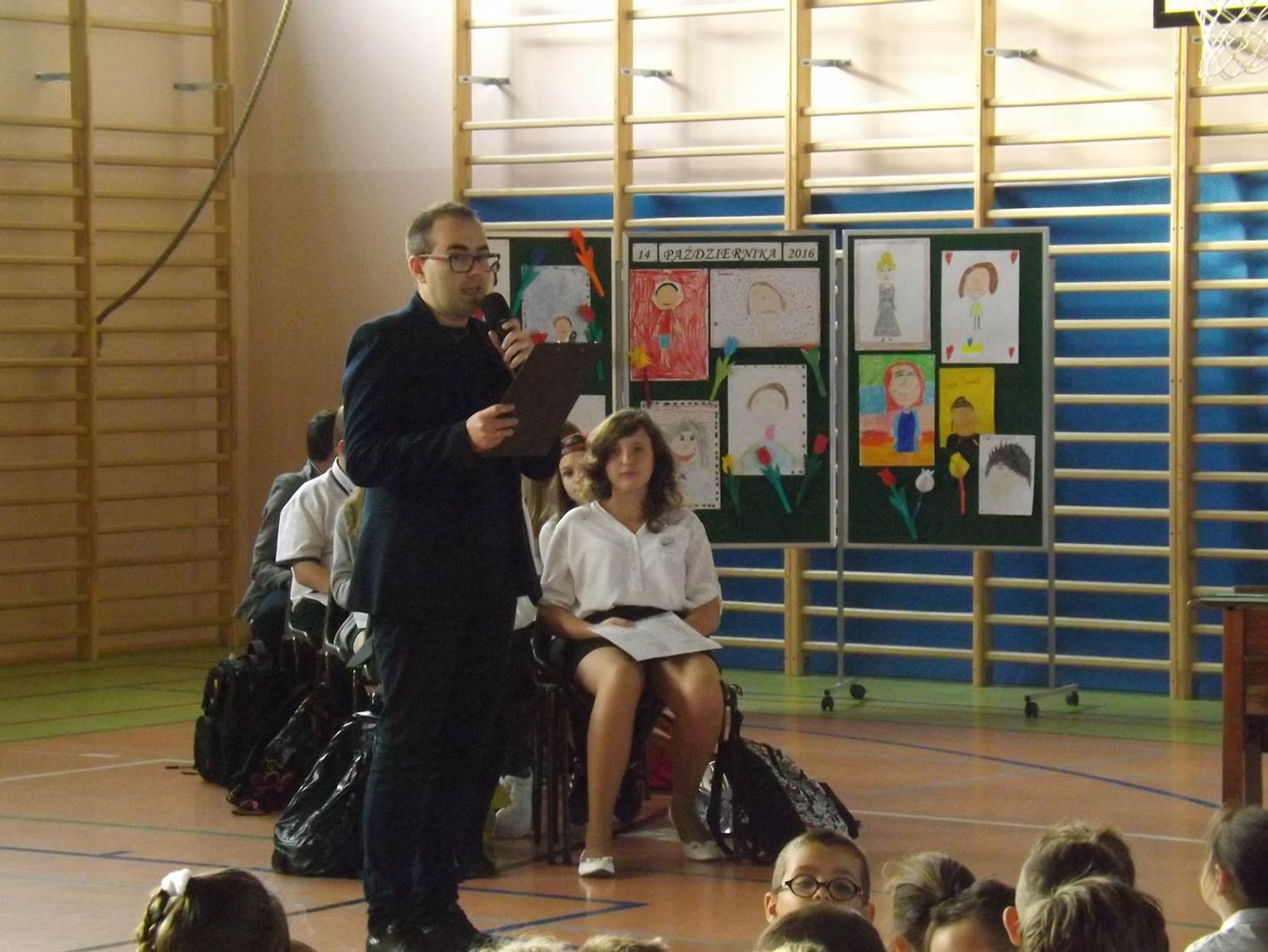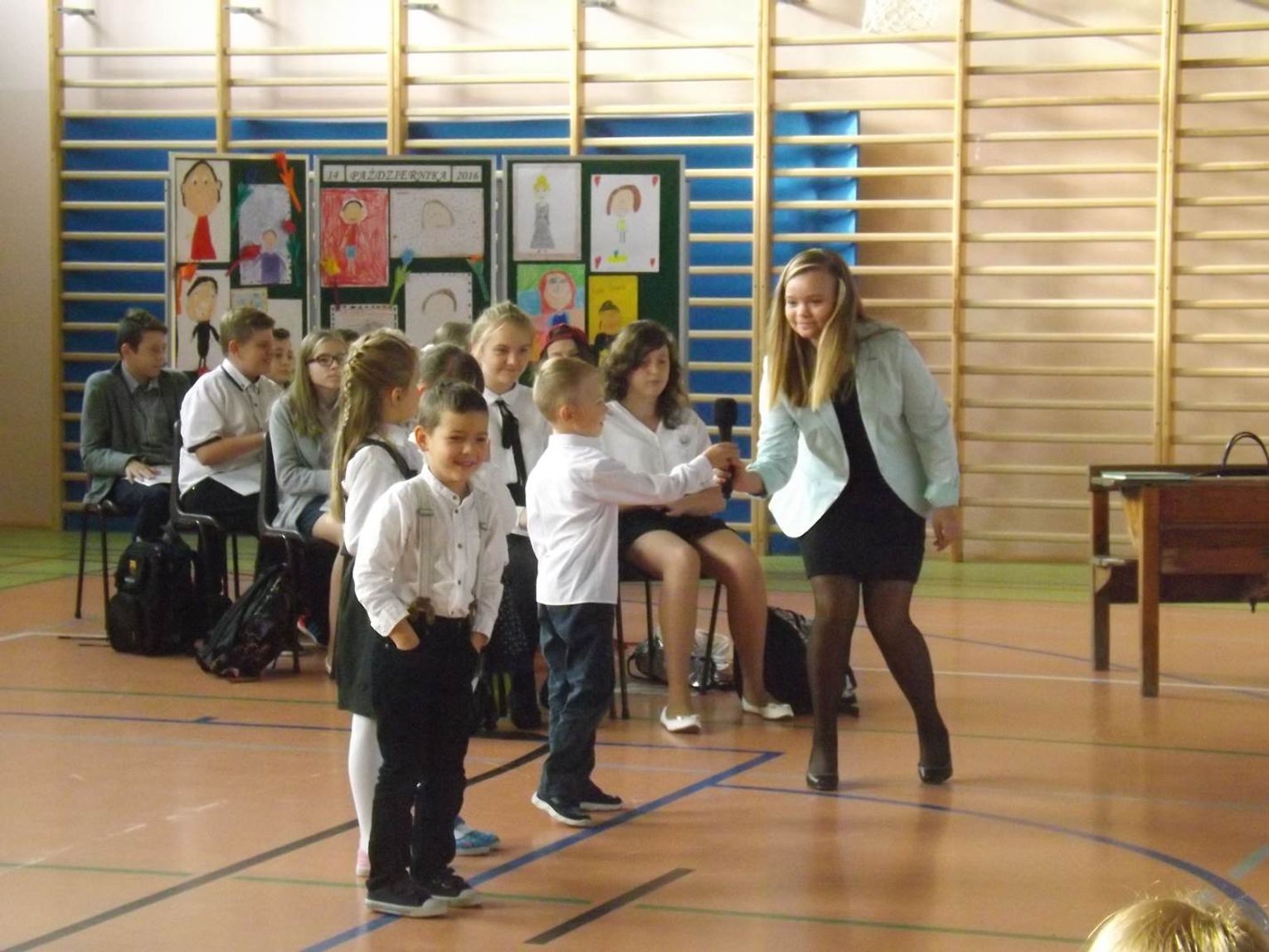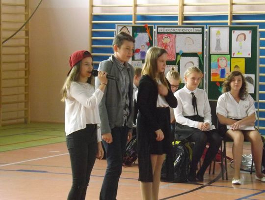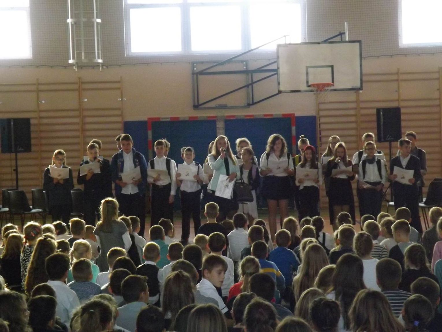 Uczniowie poszczególnych klas, pod opieką swoich wychowawców, przygotowali portrety nauczycieli, wiersze i kwiaty origami – które stanowiły przepiękną scenografię dla inscenizacji opartej na wierszach poetów polskich, poświęconych nauczycielom. Klasa 6b przygotowała swój występ dzięki wsparciu pań Joanny Czarnoty i Anity Prętkiej. Obchody Dnia Edukacji Narodowej w chojeńskiej Dwójce były przepiękną chwilą zatrzymania w szkolnym biegu, pełną wzajemnego uśmiechu, ciepłych słów i wspaniałej, wspólnej zabawy. P.T.