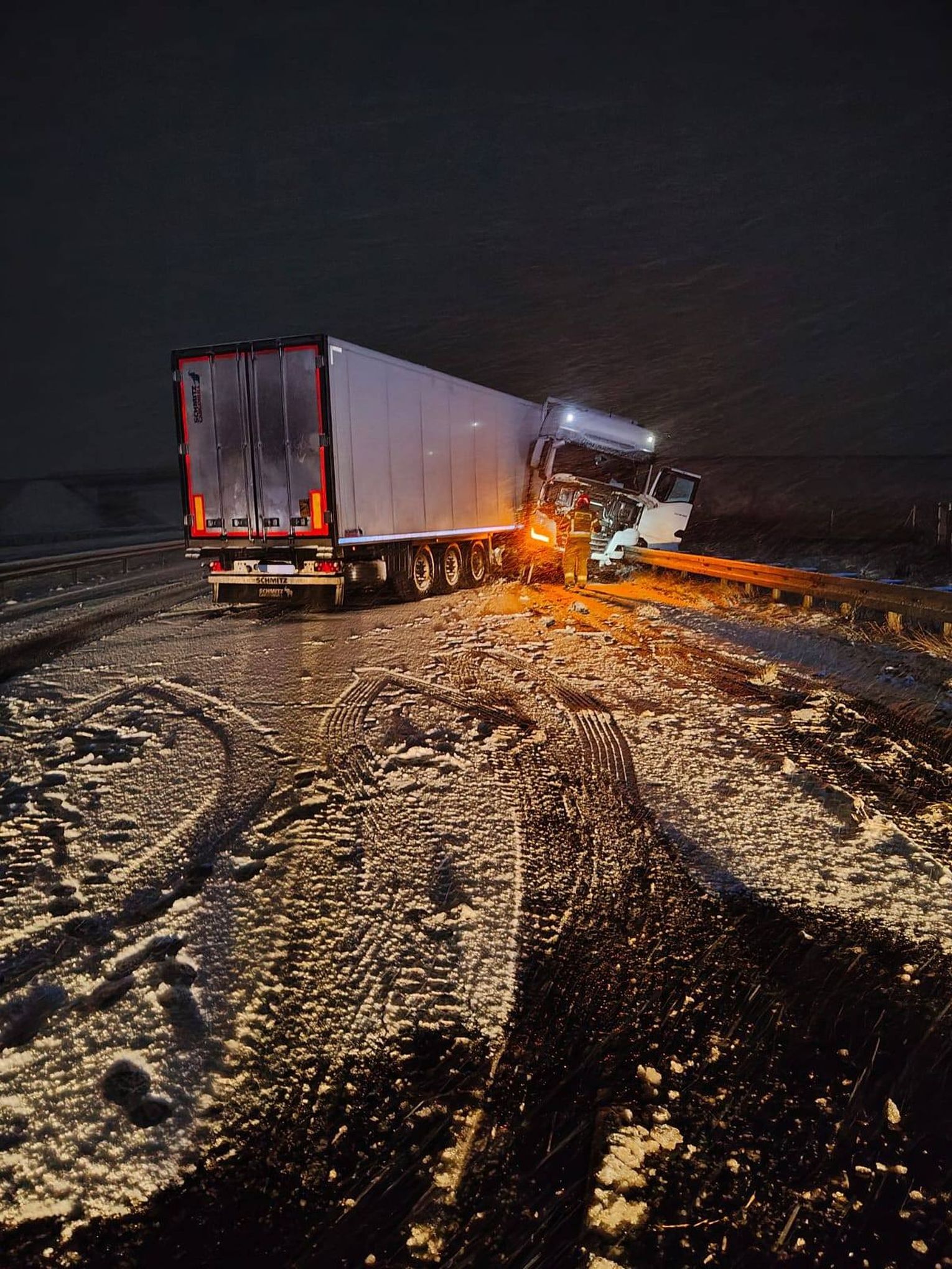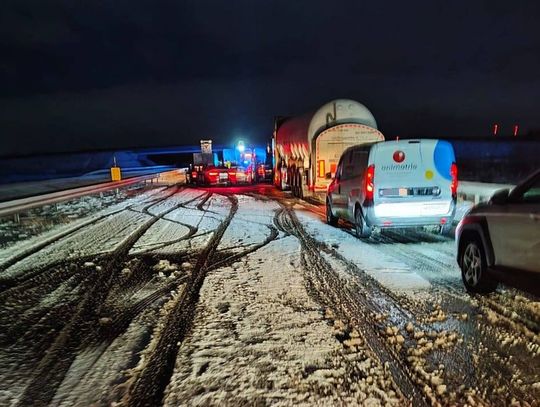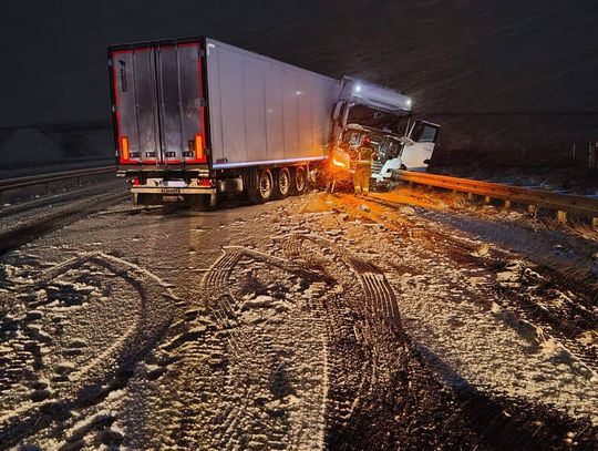 W sobotę, 3 stycznia 2026 r., zaledwie 20 minut przed północą, Dyżurny Stanowiska Kierowania Komendanta Powiatowego PSP w Pyrzycach odebrał pilne zgłoszenie o wypadku. Z powodu fatalnych warunków atmosferycznych kierowca ciężarówki stracił panowanie nad pojazdem. Rozpędzony zestaw z dużą siłą uderzył w barierki energochłonne, ustawiając się w poprzek jezdni i całkowicie odcinając przejazd w kierunku Szczecina.
