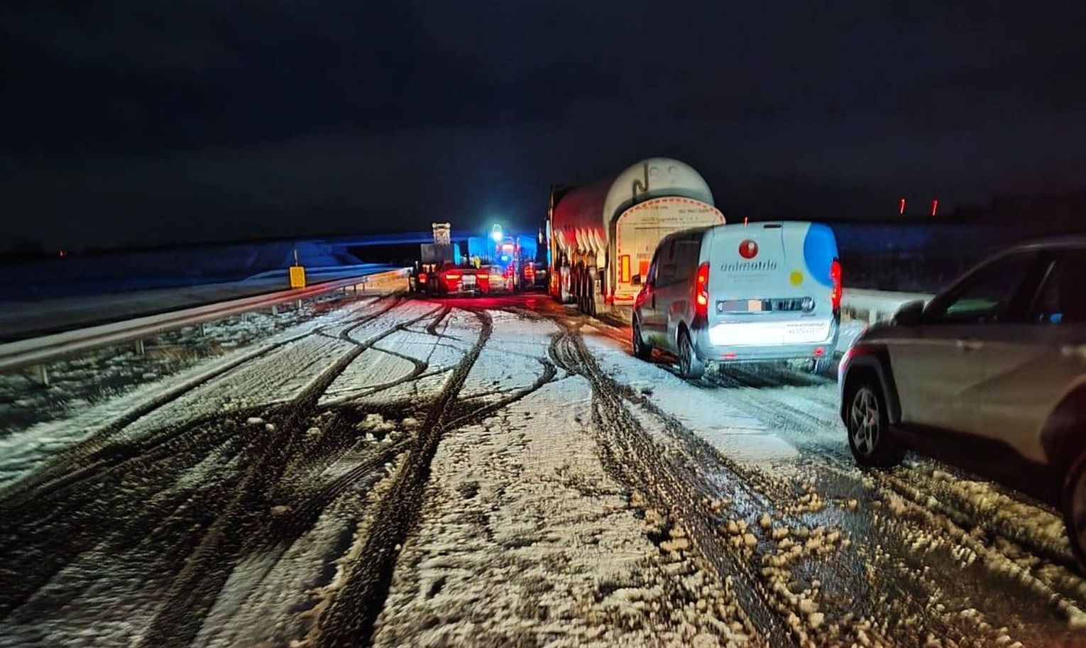 Wypadek spowodował gigantyczny zator. Na zdjęciach z miejsca zdarzenia widać sznur samochodów osobowych i ciężarowych, które utknęły na zaśnieżonej trasie. Sytuacja była o tyle trudna, że niska temperatura i przeszywający wiatr stwarzały zagrożenie dla osób oczekujących w zablokowanych autach.