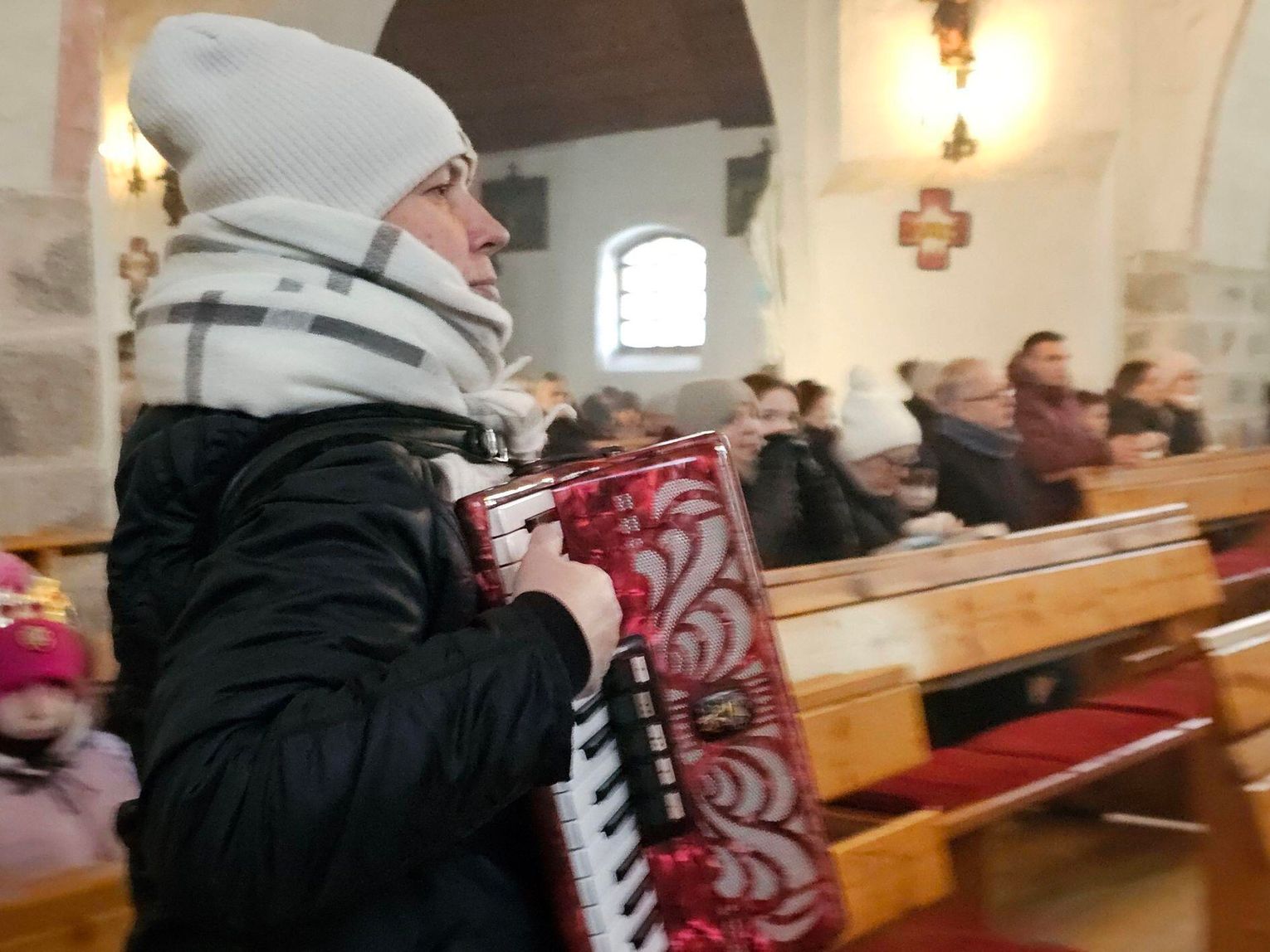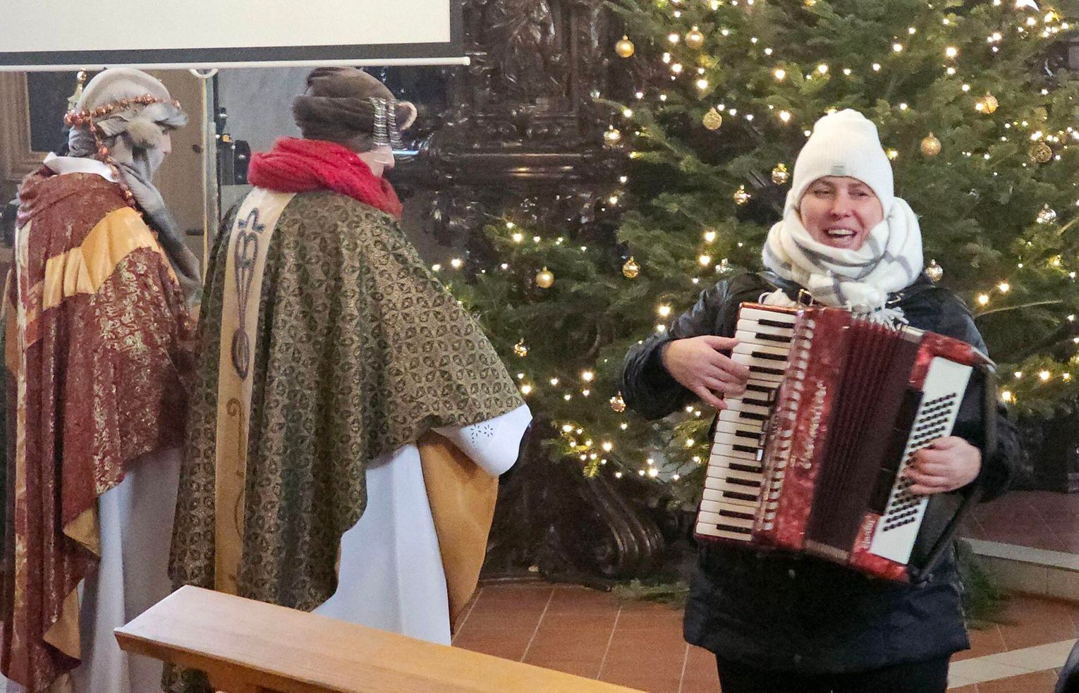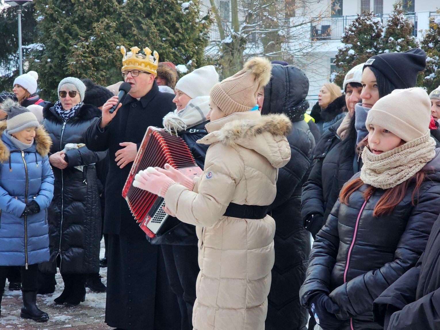 Nieodłącznym elementem dzisiejszego przemarszu była muzyka na żywo. Na akordeonie, zagrzewając uczestników do głośnego śpiewu, przygrywała Ewa Kwiecień, znana instruktorka muzyczna. Dzięki dźwiękom instrumentu tradycyjne polskie kolędy brzmiały wyjątkowo donośnie, a mieszkańcy z radością włączali się do wspólnego świętowania.