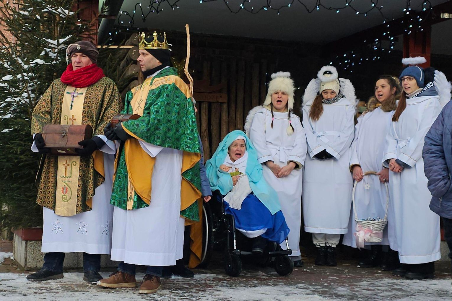 Zapraszamy do obejrzenia załączonych materiałów. Na filmie widać moment przejścia pochodu przez miasto oraz radosny śpiew przy akompaniamencie akordeonu. Zdjęcia dokumentują piękne korony uczestników oraz dostojeństwo Trzech Króli, którzy prowadzili mieszkańców do bramy DPS-u.