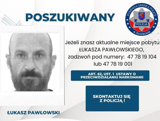 Łukasz Pawłowski – poszukiwany w związku z naruszeniem przepisów Ustawy o przeciwdziałaniu narkomanii (Art. 62, ust. 1). Sprawa dotyczy posiadania środków odurzających lub substancji psychotropowych.