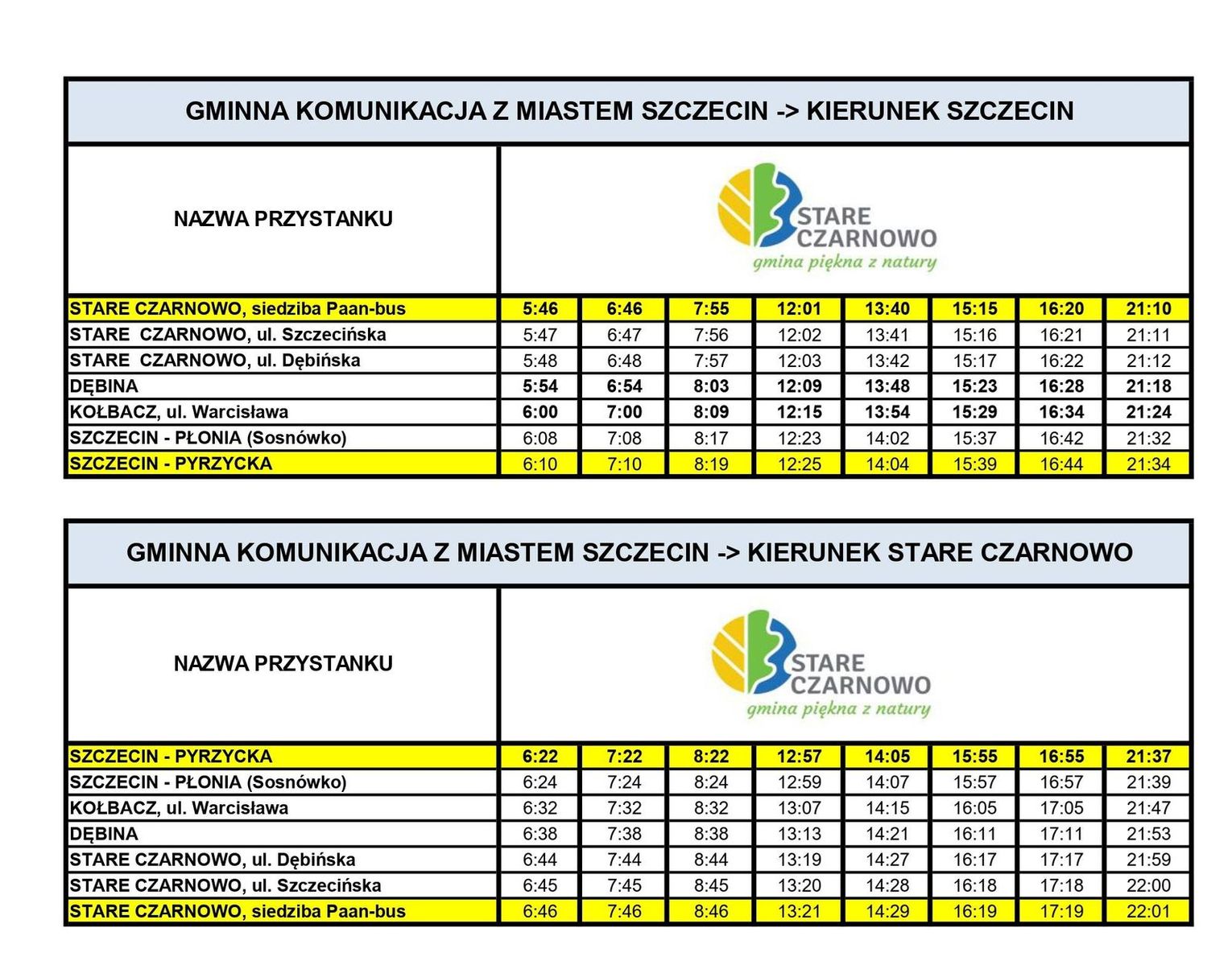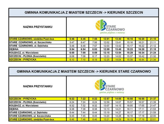 - Linia nr 6 (Stare Czarnowo – Szczecin Śmierdnica): Ruszyła 2 stycznia. Przebiega przez Dębinę i Kołbacz. Każdego dnia pasażerowie mogą skorzystać z 16 połączeń (8 do Szczecina i 8 powrotnych). Kursy są zsynchronizowane z linią „79” ZDiTM, co pozwala na szybką (ok. 5 minut) przesiadkę na tramwaj w kierunku centrum Szczecina.