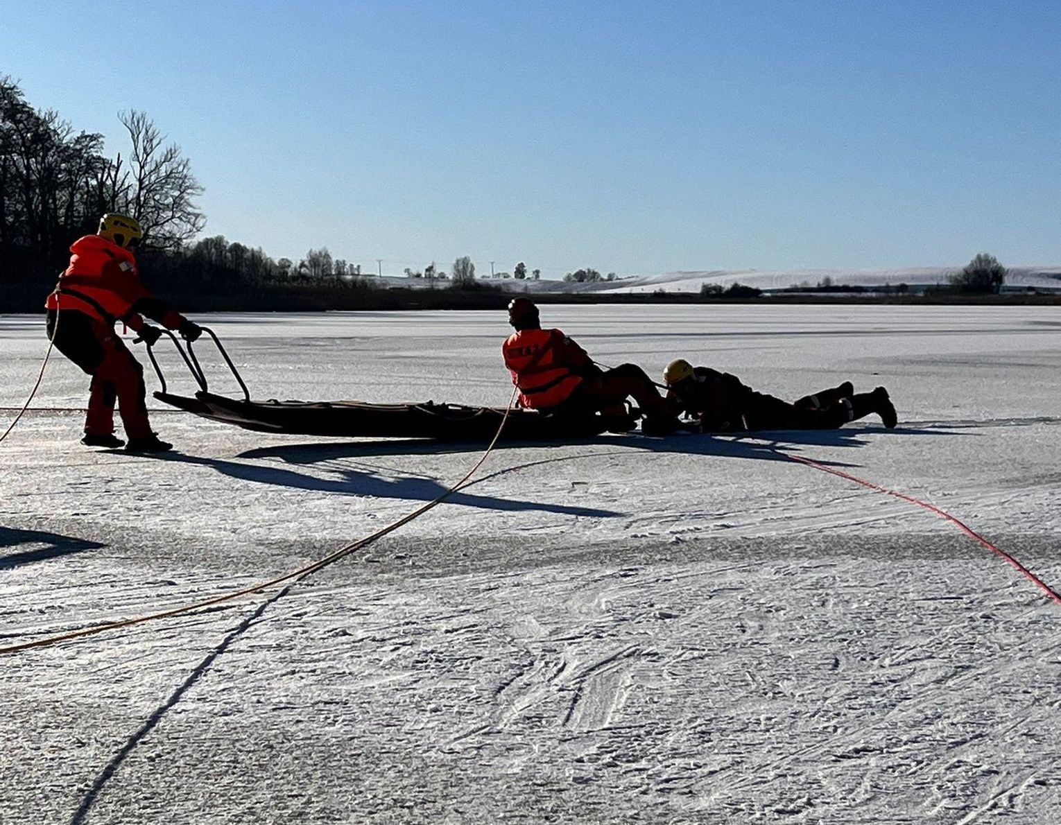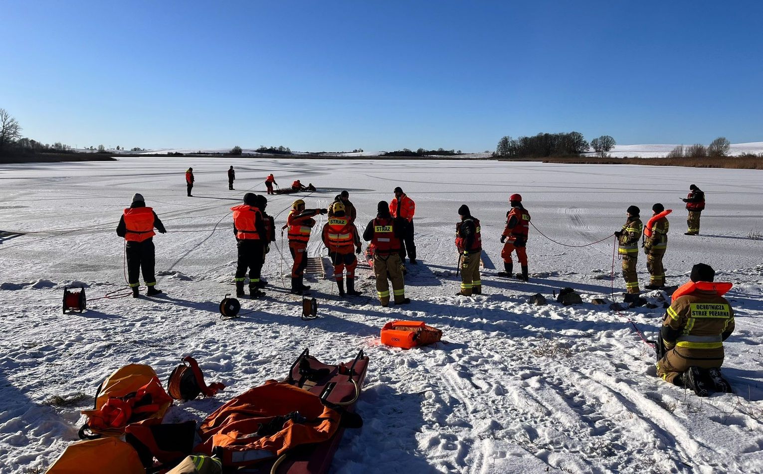 Podczas ćwiczeń wykorzystywano m.in. sanie lodowe, rzutki ratunkowe oraz specjalistyczne skafandry wypornościowe, które pozwalają ratownikom na bezpieczną pracę bezpośrednio w wodzie i na krawędzi załamanego lodu.