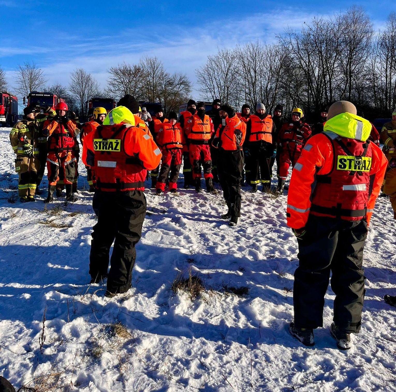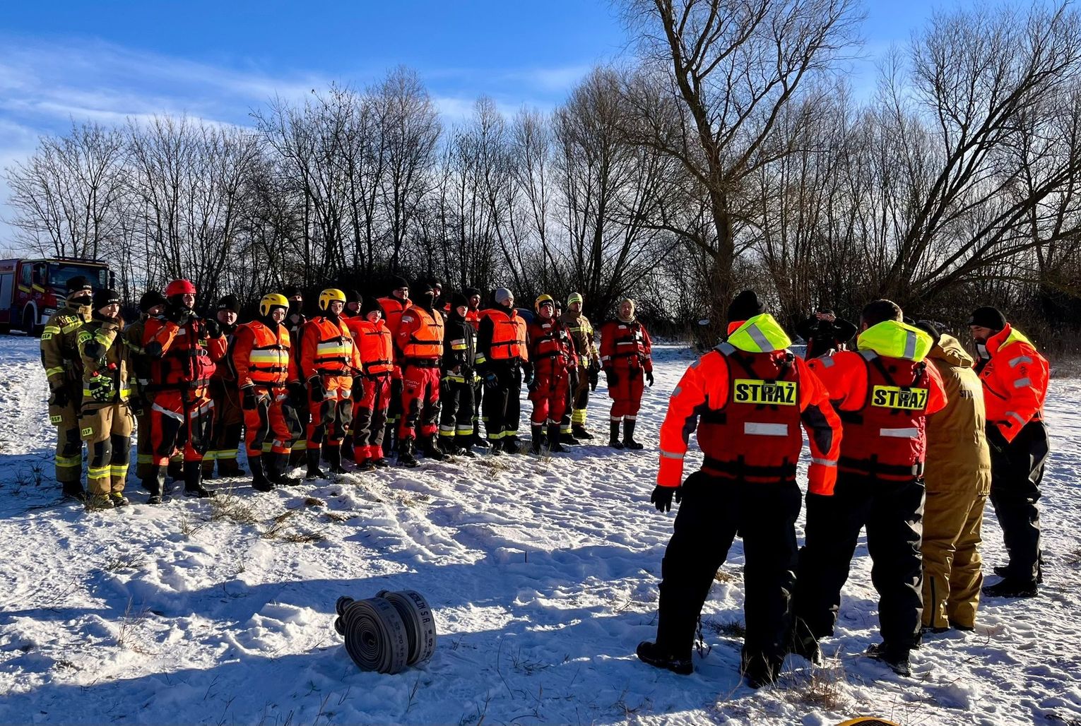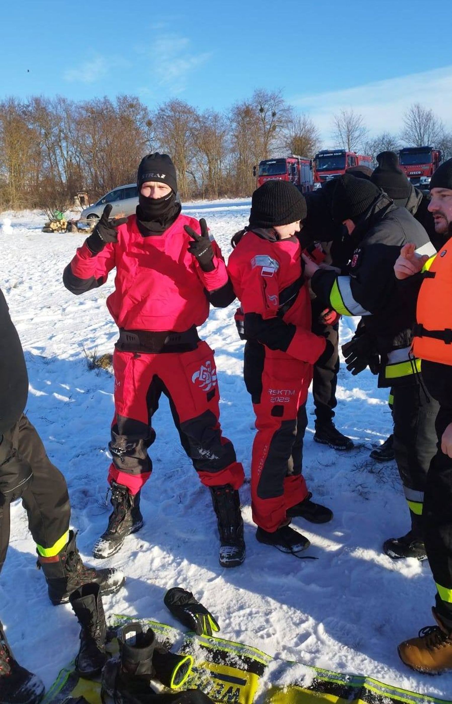Szkolenie nie byłoby tak wartościowe, gdyby nie profesjonalny nadzór. Nad poprawnością wykonywanych zadań czuwali doświadczeni strażacy z Jednostki Ratowniczo-Gaśniczej w Gryfinie. Obecność zawodowców pozwoliła na korygowanie błędów w czasie rzeczywistym i przekazanie cennych wskazówek dotyczących ergonomii pracy w ekstremalnym chłodzie.