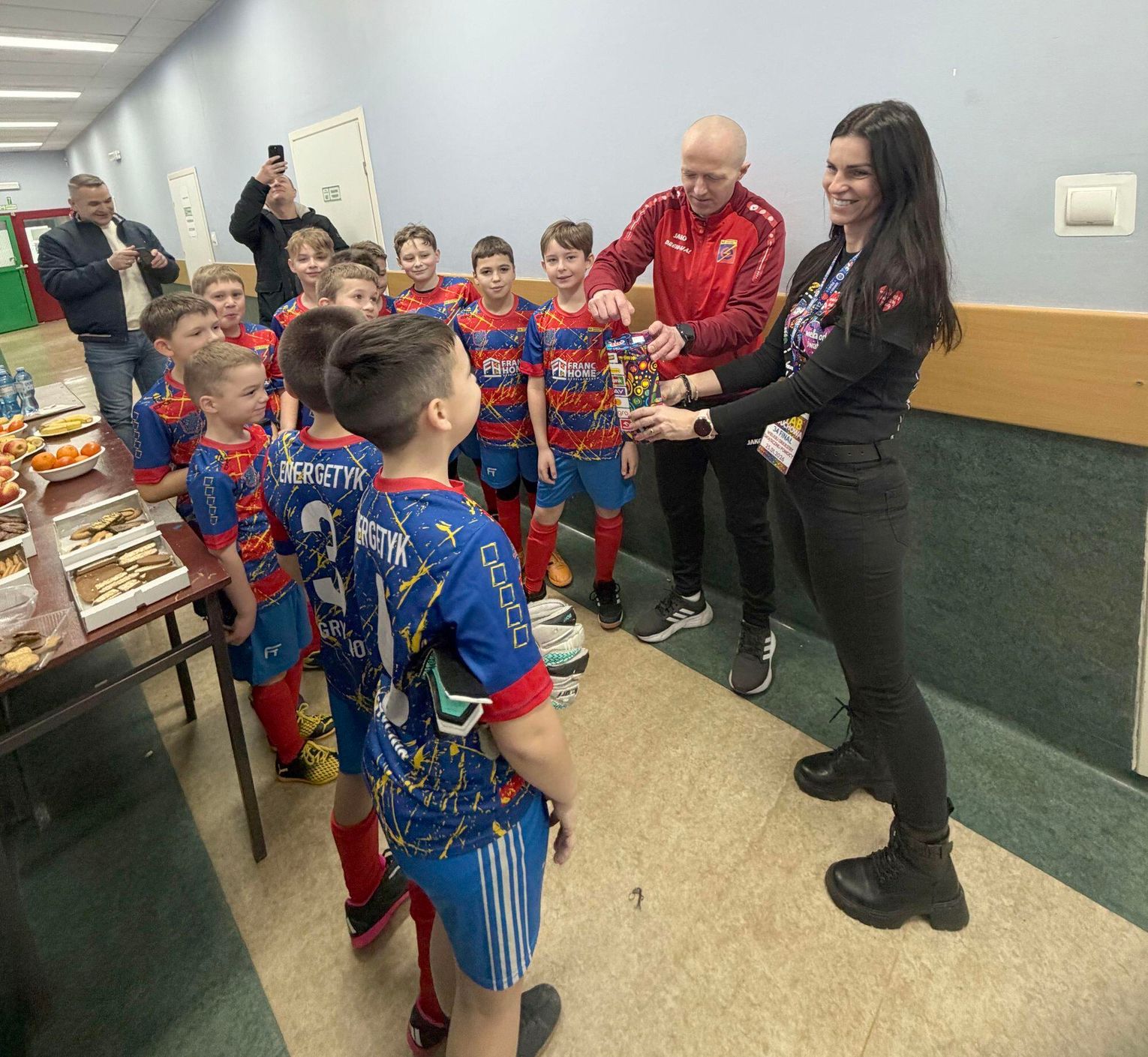 Na parkiecie królowały sportowe emocje, czego najlepszym dowodem był mecz małych piłkarzy, który stał się głównym punktem dzisiejszej fotorelacji. Młodzi zawodnicy z ogromnym zaangażowaniem biegali za piłką, pokazując, że pomagać można również poprzez sportową rywalizację. Każdy celny strzał do bramki nagradzany był gromkimi brawami rodziców i kibiców. To właśnie ten widok — najmłodszych pomagających swoim rówieśnikom — najlepiej oddaje ideę tegorocznej zbiórki.