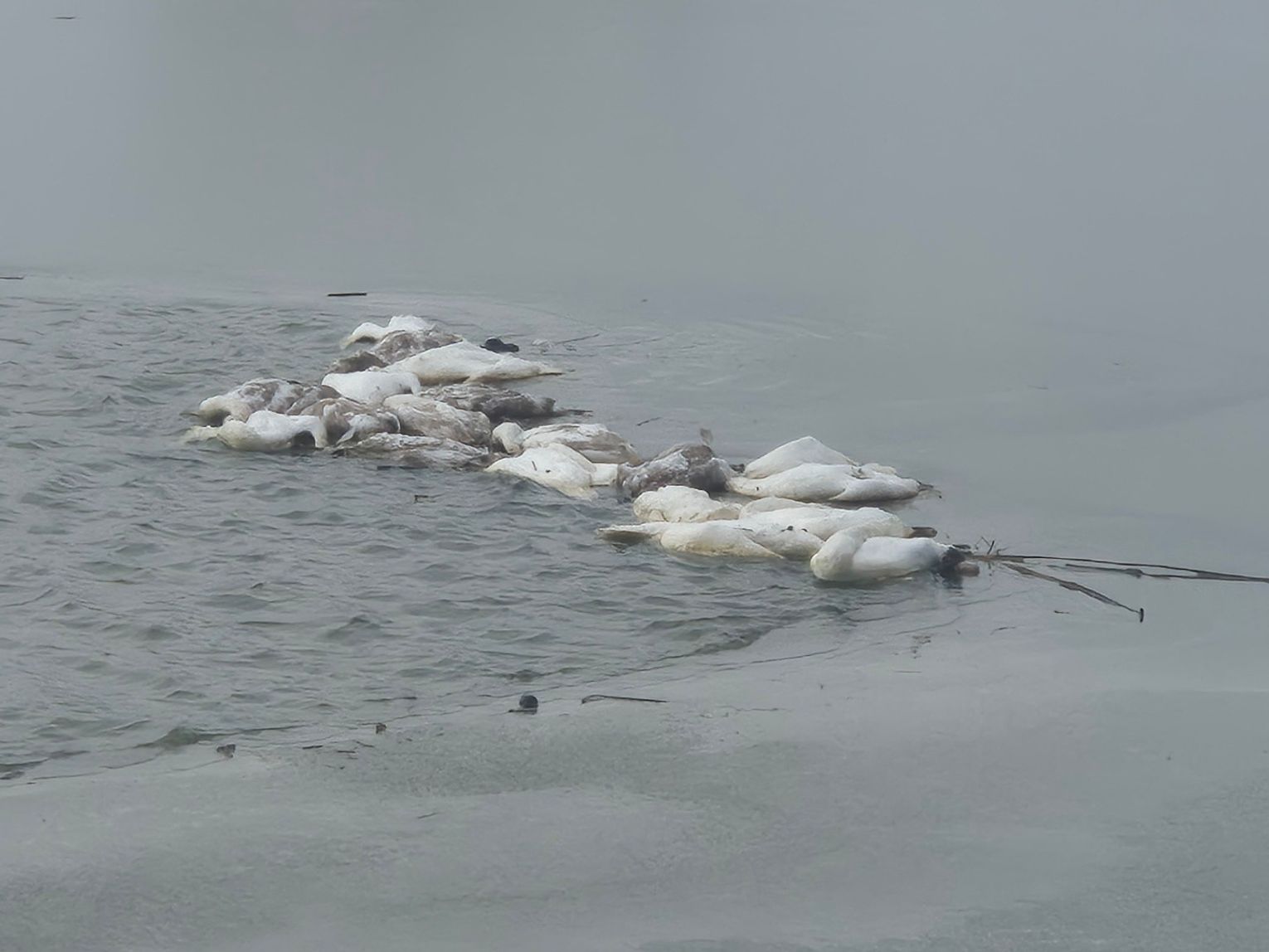 Jest zagrożenie chorobowe: Nie wiemy, co jest przyczyną pomoru. Prawdopodobnie zamarzły. W dobie nawracających ognisk ptasiej grypy, pozostawienie rozkładających się truchła w wodzie jest skrajnie nieodpowiedzialne.