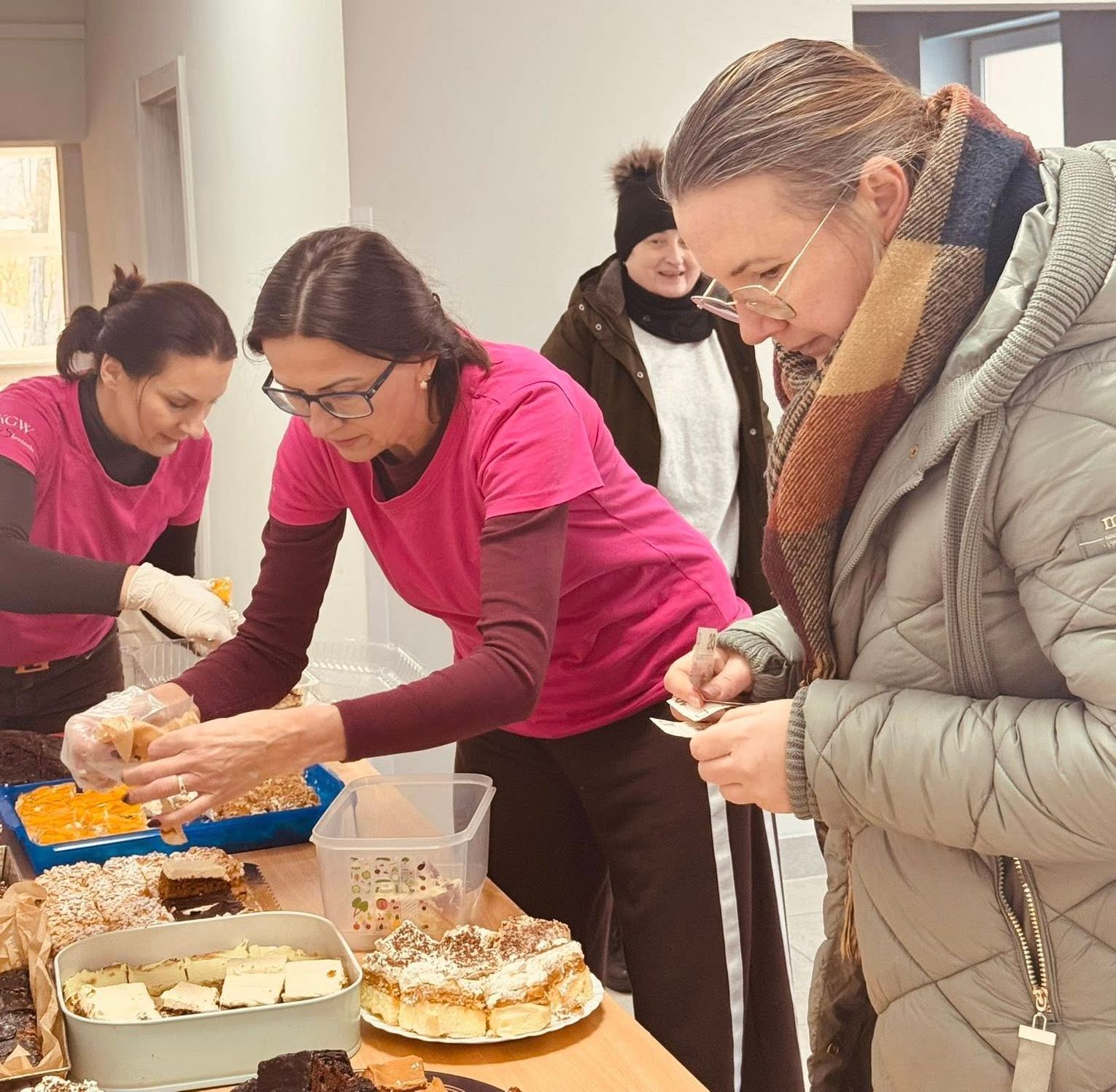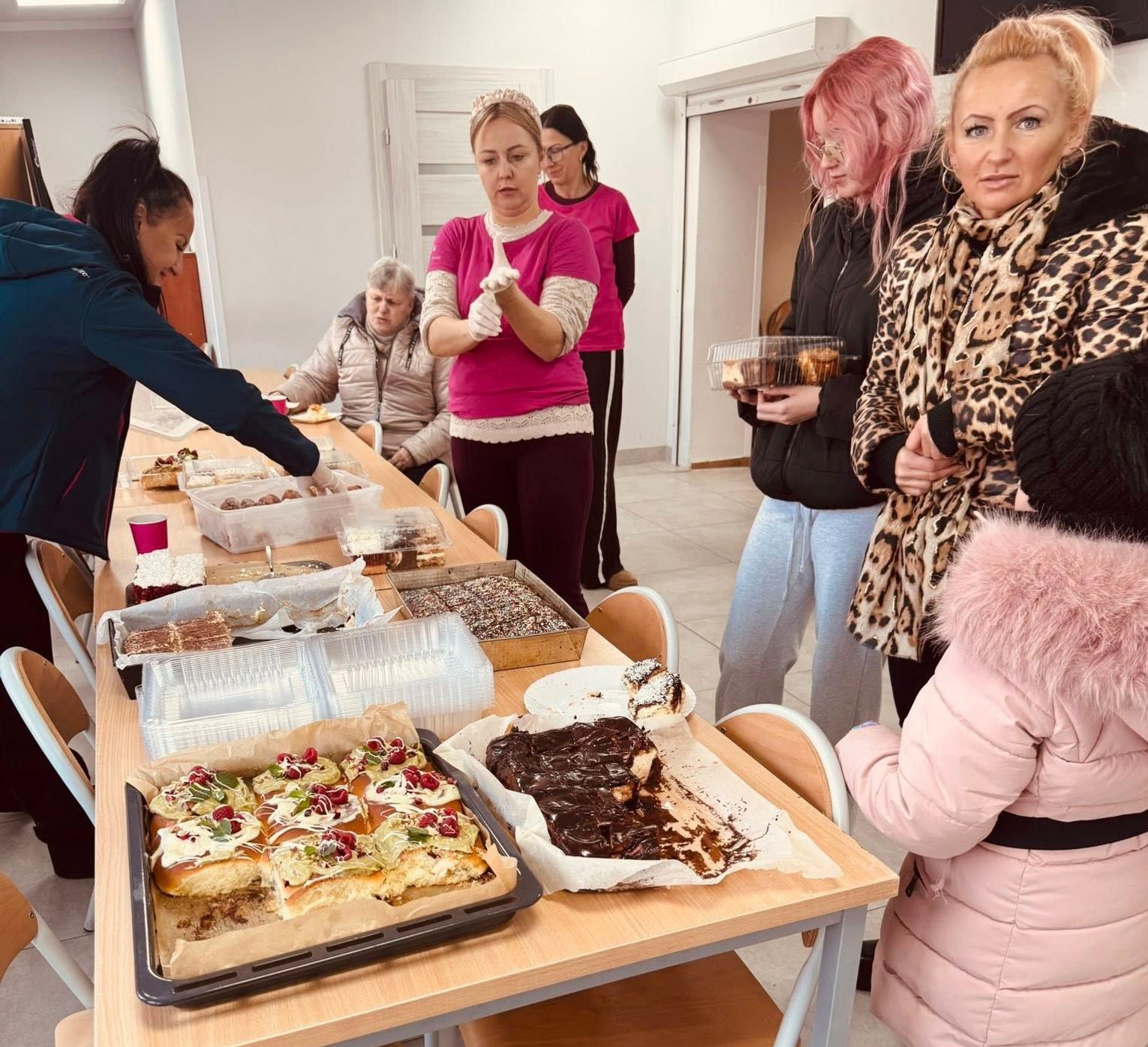 Na stołach zagościły pyszne, domowe wypieki: od klasycznego sernika i słonecznikowca, po ciasto marchewkowe i malinową chmurkę. Dzięki bardzo dobrej frekwencji wszystkie zebrane środki zostały przekazane bezpośrednio żonie pana Bartosza tuż po zakończeniu akcji.