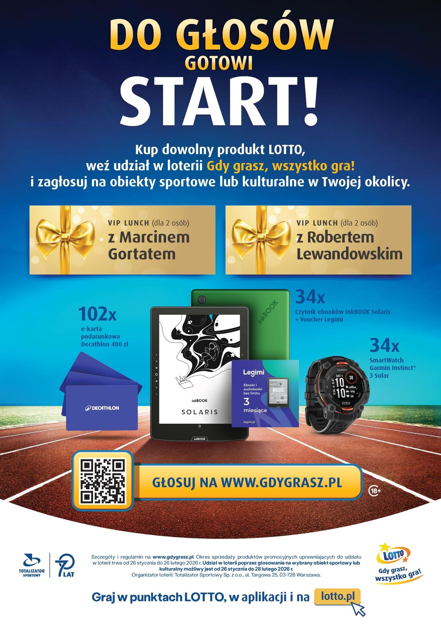 Kino od zawsze pełni ważną funkcję społeczną. Dlatego widzowie, oprócz premierowego repertuaru filmowego, popcornu i zniżek dla użytkowników aplikacji LOTTO, będą mogli oddać głos na lokalne inicjatywy zgłoszone do programu oraz wziąć udział w loterii. Udział w głosowaniu umożliwia nie tylko realny wpływ na rozwój regionu, ale także szansę na atrakcyjne nagrody, m.in. karty podarunkowe, czytniki e-booków, smartwatche oraz VIP Lunch z Marcinem Gortatem lub Robertem Lewandowskim. Aby wziąć udział w loterii, wystarczy kupić dowolny produkt LOTTO i oddać głos na wybrany projekt. Głosowanie potrwa od 26 stycznia do 28 lutego 2026 roku.