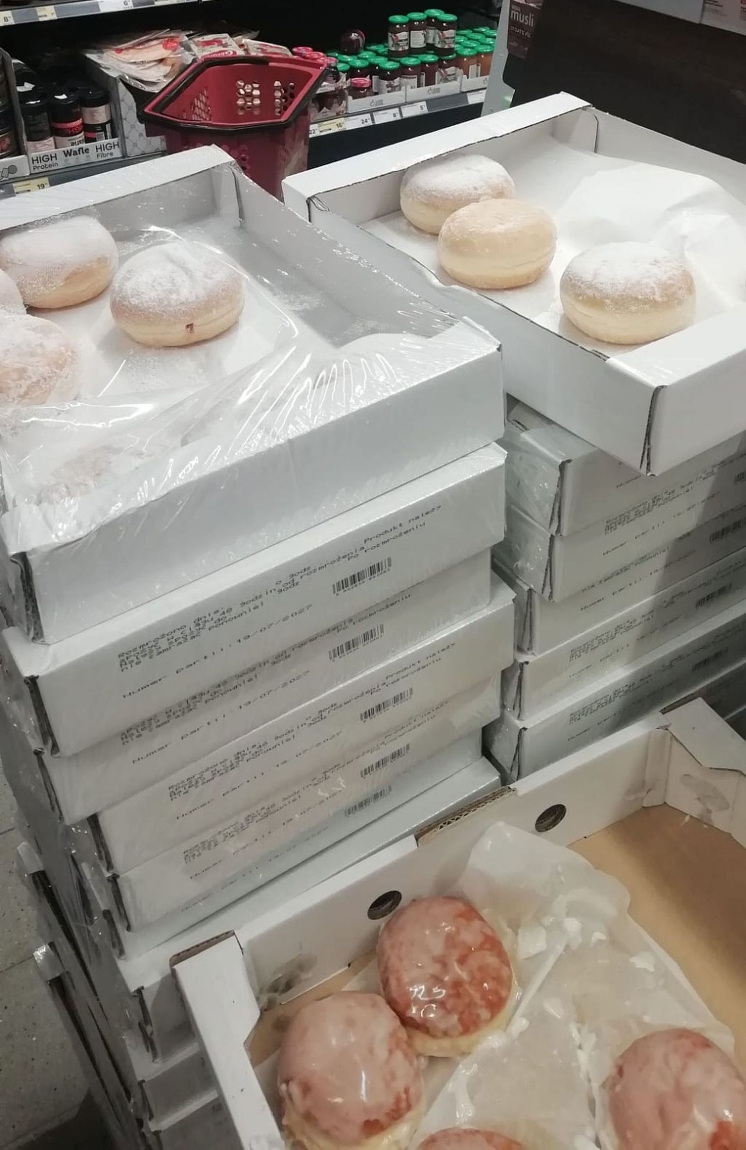 Wybór dostępny w tym roku w naszym regionie potrafi przyprawić o zawrót głowy. Na sklepowych paletach (co widać na załączonych zdjęciach) królują nie tylko standardowe pączki, ale cała gama wariacji:
