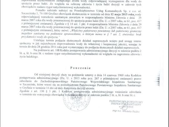 Informuje się, że dla pozostałych odbiorców wody pitnej na terenie miasta i gminy Gryfino woda jest w pełni zdatna do spożycia.