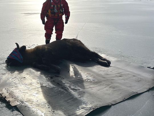 Zima i zamarznięte akweny to śmiertelne zagrożenie, które nie wybiera. Przekonała się o tym dwuletnia samica żubra, pod którą w piątkowy poranek załamał się lód. Dzięki czujności jednego z mieszkańców oraz błyskawicznej interwencji służb, ta historia ma swój szczęśliwy finał.
