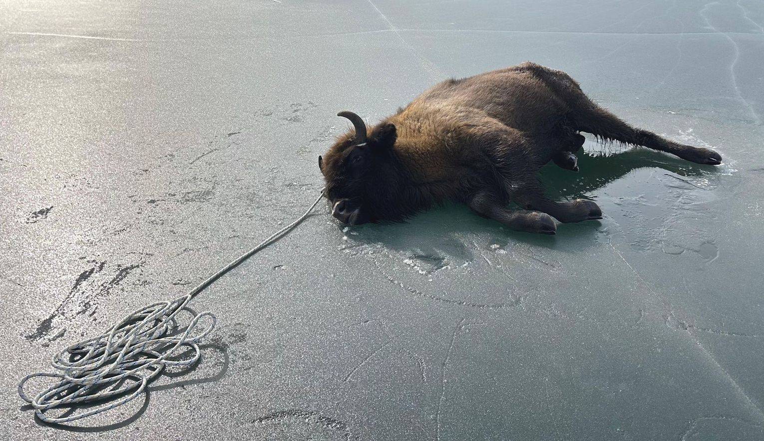 Wszystko zaczęło się w piątek tuż po godzinie 7:00 rano. Na zamarzniętym zwierciadle jeziora Bytyń Wielki zauważono uwięzione zwierzę. Młoda, około 2-letnia żubrzyca, nie była w stanie samodzielnie wydostać się z lodowatej wody. Jej życie wisiało na włosku – w takich warunkach wychłodzenie organizmu postępuje błyskawicznie.