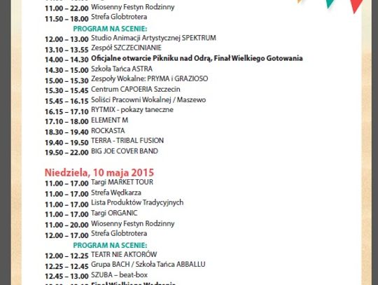 „Piknik nad Odrą” to też rodzinny jarmark z wesołym miasteczkiem i występami na scenie (zaprezentują się zespoły folklorystyczne, instrumentalne i wokalne, a wieczorem usłyszeć będzie można muzykę metal i rock). Będą też konkursy i pokazy dla odwiedzających (na scenie i na stoiskach).