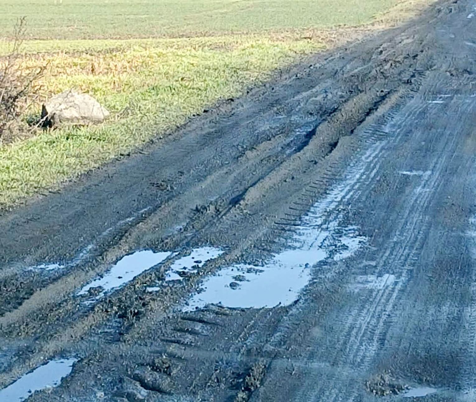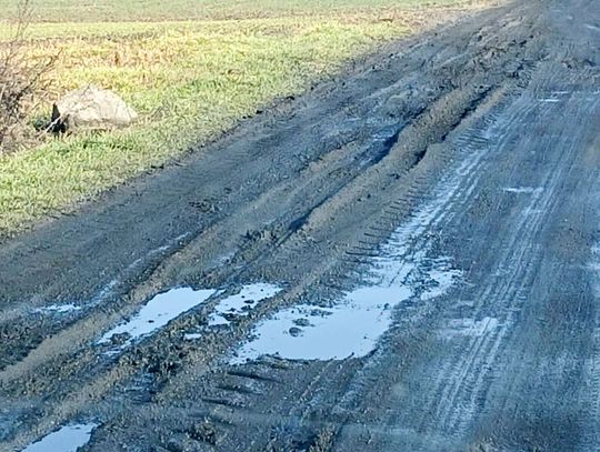 Jednak od tamtego czasu minęło ponad 1,5 roku. Zdjęcia przesłane przez naszą czytelniczkę są bezlitosne – po tamtych naprawach nie ma już śladu. Zamiast równego szutru mamy błotnistą pułapkę.