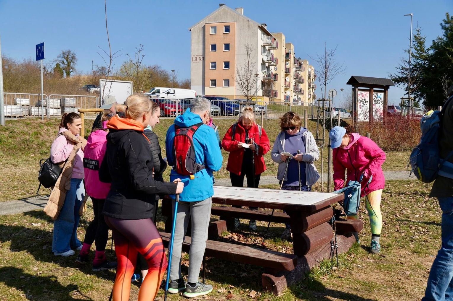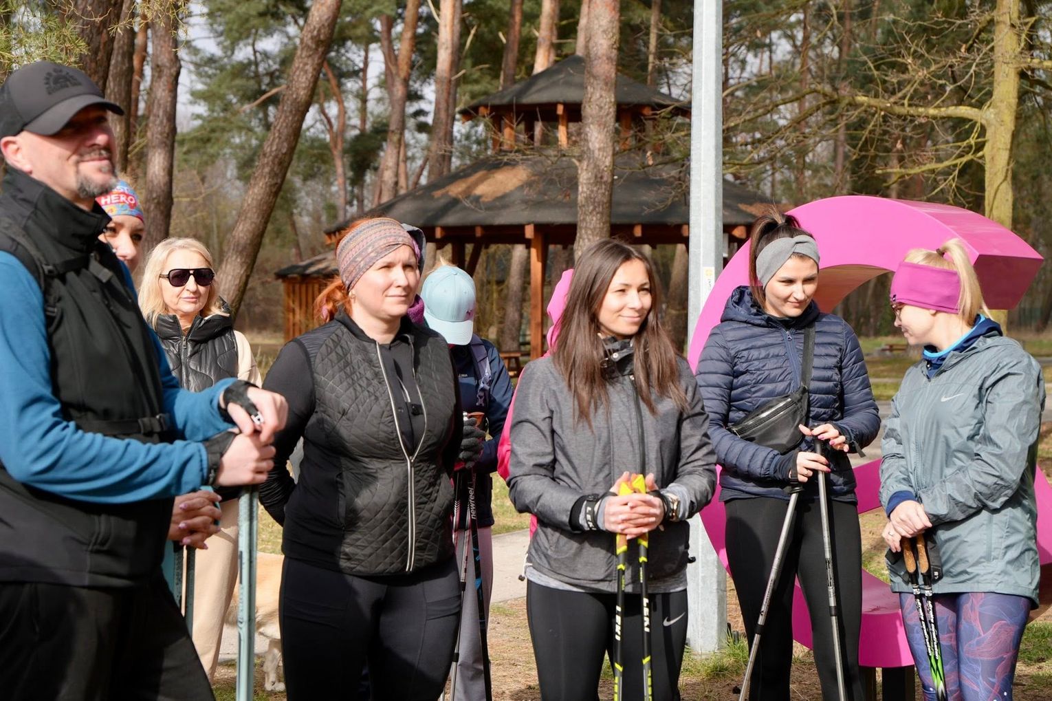 Punktualnie o godzinie 10:00 parking przy Centrum Wodnym Laguna wypełnił się pozytywną energią i rytmicznym stukotem kijków. To właśnie tam zebrali się entuzjaści marszu, gotowi na pokonanie trasy łączącej sportową rywalizację z edukacją ekologiczną. Pogoda dopisała idealnie – wiosenne słońce towarzyszyło uczestnikom od pierwszych metrów.