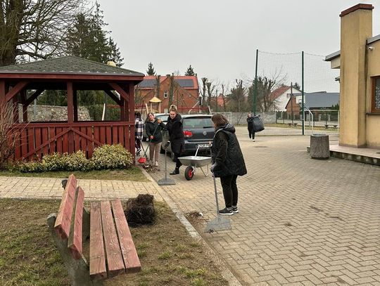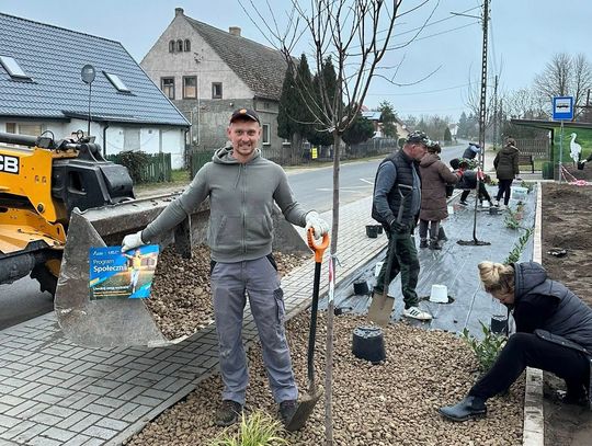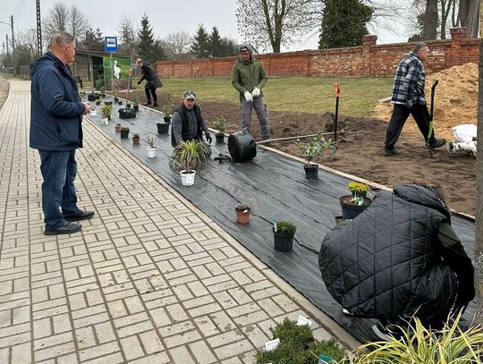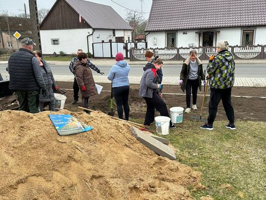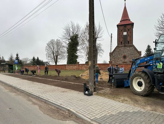 Wszystko zaczęło się od inicjatywy KGW Złoty Kłos z Żelechowa (gm. Widuchowa). Członkinie koła z sukcesem ubiegały się o grant w ramach Programu Społecznik, co pozwoliło na zakup sadzonek i niezbędnych materiałów. Efekty prac, które prowadzono intensywnie 20 i 21 marca 2026 r., widać już na pierwszy rzut oka zarówno w centrum miejscowości, jak i na terenie lokalnego boiska.