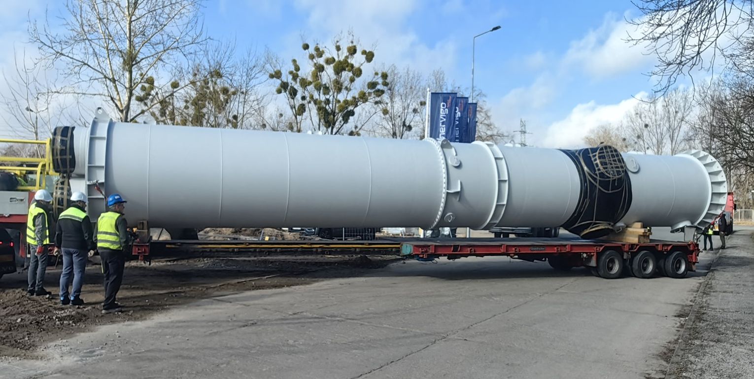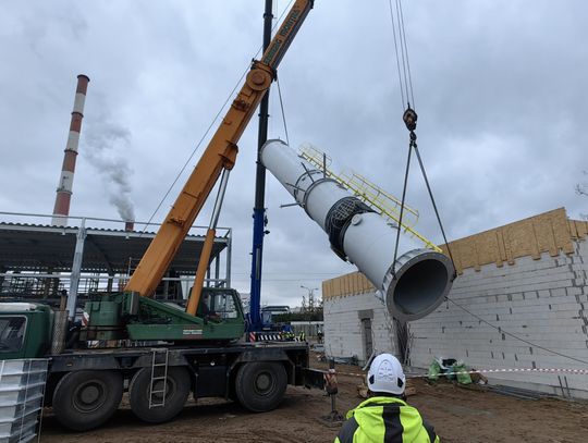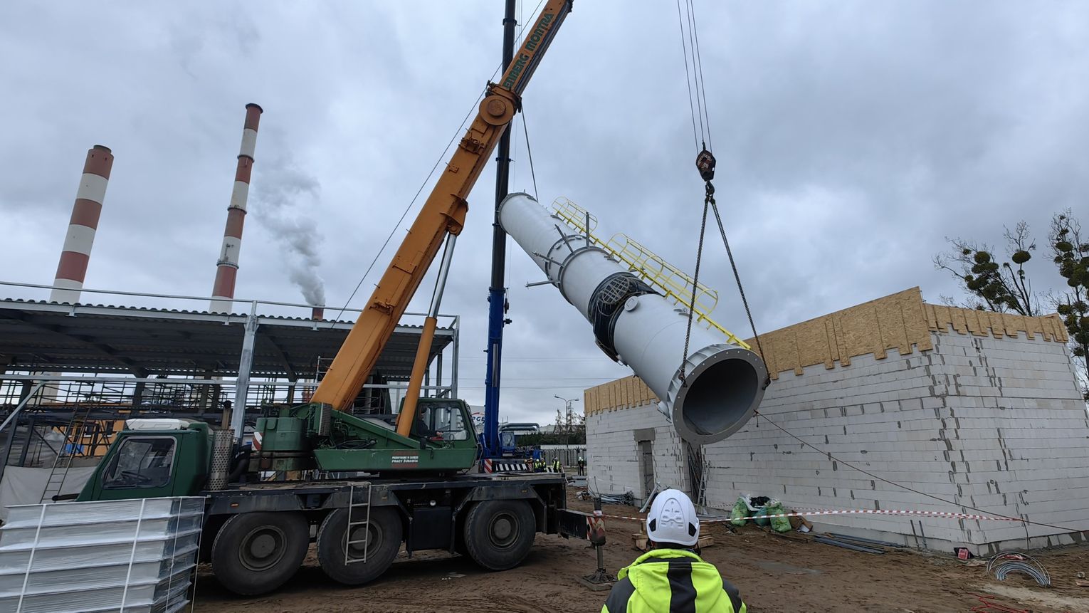 Ostatnie dni na placu budowy w Nowym Czarnowie upłynęły pod znakiem precyzyjnych operacji dźwigowych. Głównym bohaterem stał się trzyprzewodowy stalowy komin. Konstrukcja o wysokości 20 metrów i średnicy przekraczającej 2 metry została dostarczona na miejsce w całości.