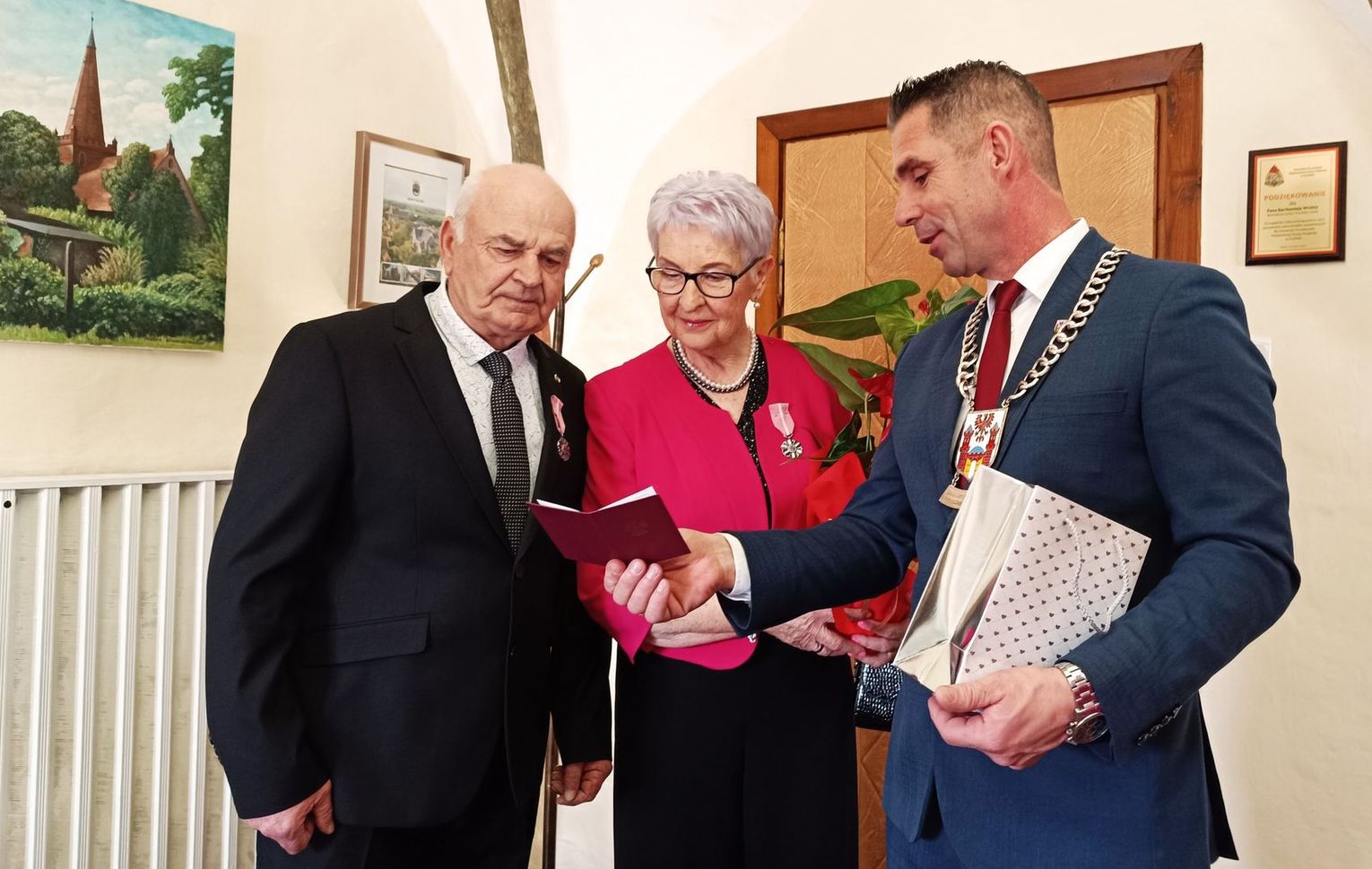 Wczorajsza uroczystość w ratuszu miała wyjątkowy charakter. Za trwałość więzów małżeńskich i budowanie silnej rodziny, Burmistrz Bartłomiej Wróbel oraz Kierownik USC Marianna Kozik wręczyli jubilatom medale przyznane przez Prezydenta Rzeczypospolitej Polskiej.