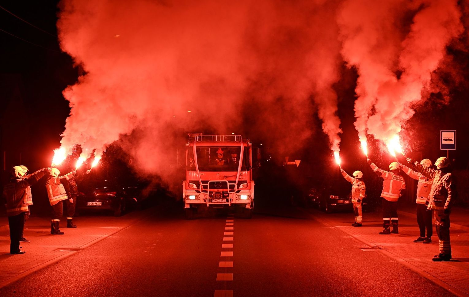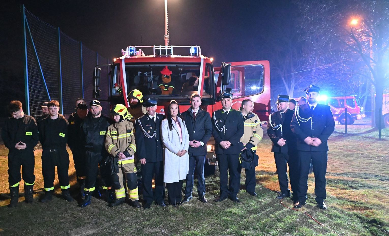 W asyście jednostek z OSP Stare Czarnowo, OSP Kołbacz oraz OSP Żelewo, przy głośnym dźwięku syren, na plac wjechał zakupiony średni pojazd ratowniczo-gaśniczy. Strażacy utworzyli efektowny szpaler, odpalając race, które zamieniły noc w czerwony spektakl.