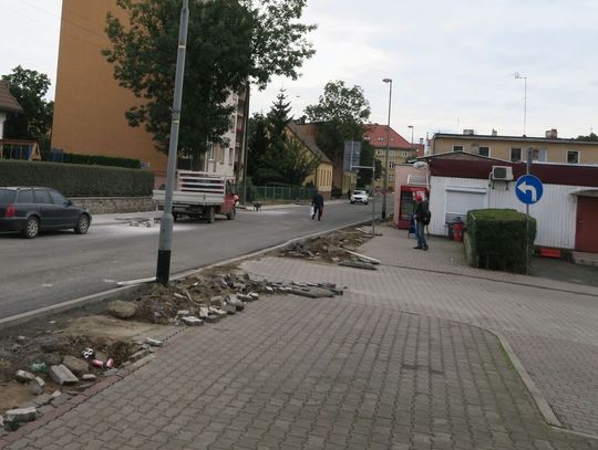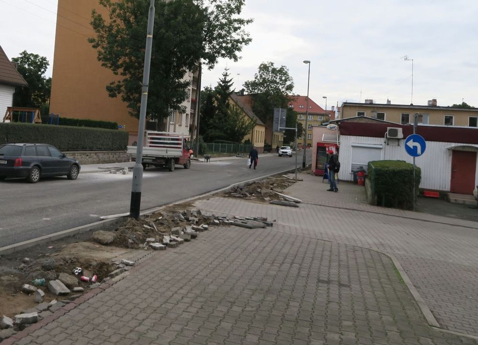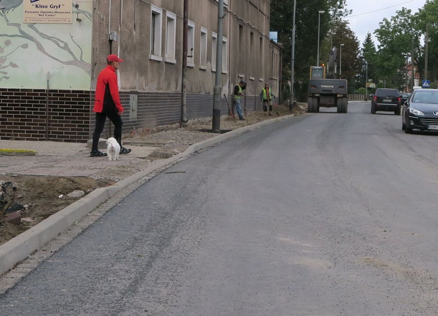 Ulica Szczecińska w Gryfinie stała się na krótko (miejmy nadzieję) specyficzną arterią. Ze względu na remontowane chodniki trzeba chodzić tam środkiem drogi. Ale uwaga!