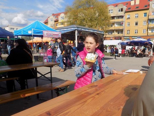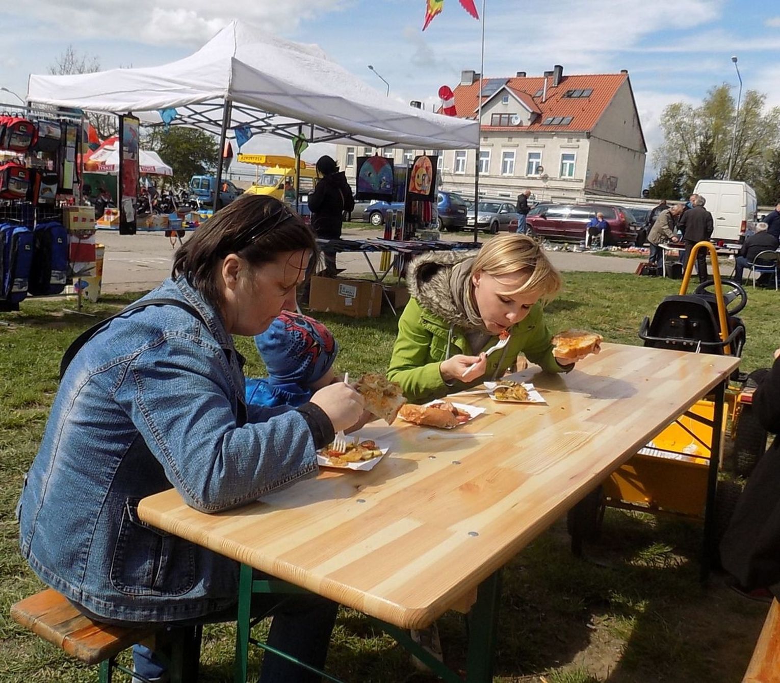 Golonka, pierogi i kiełbaska z cebulą przywiezione z Daleszewa smakowały wyśmienicie. Miody, dżemy i rogaliki pana Leszka też oko przyciągały. Pajdy chleba ze smalcem oferowane przez panie z Gardna smakowały zupełnie jak u mamy. Ciasta znikały jak przysłowiowa kamfora.