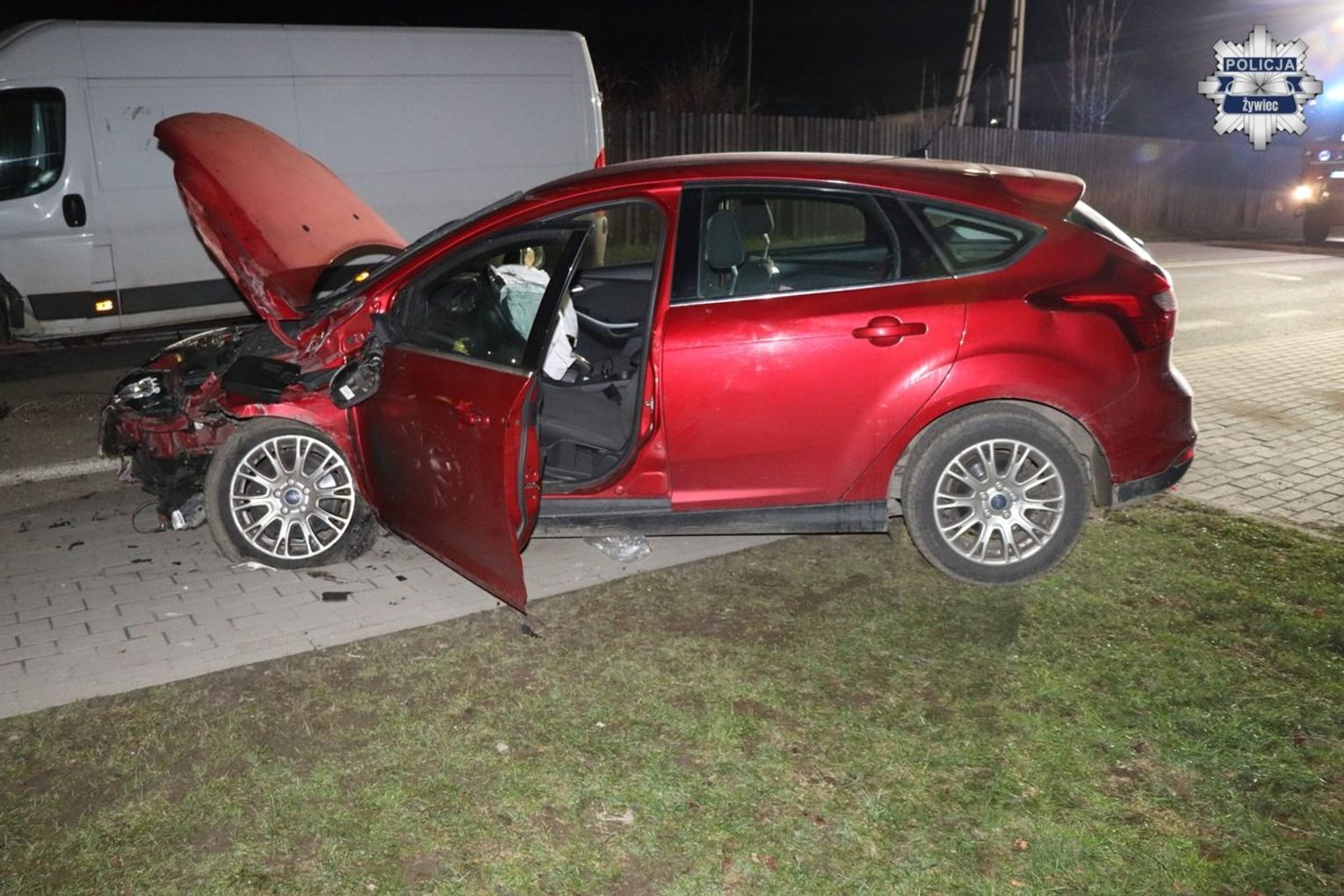 Młody mężczyzna został zatrzymany i noc spędził w policyjnym areszcie. Pobrano od niego krew do dodatkowych badań laboratoryjnych, a rozbity Ford trafił na policyjny parking.