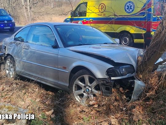 Jak ustalili pracujący na miejscu funkcjonariusze, 22-letni kierowca BMW nie dostosował prędkości do warunków panujących na drodze. W efekcie stracił panowanie nad pojazdem, zjechał na pobocze i z dużym impetem uderzył w drzewo.