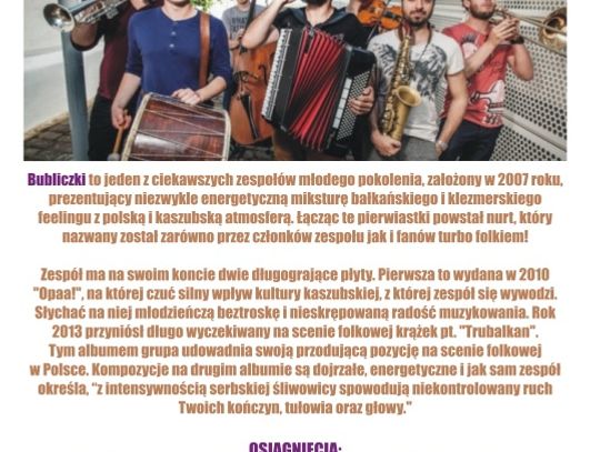 18.30 - Bubliczki/ koncert/ muzyka folk/ kaszubski rytm i zachodniopomorskie zadęcie