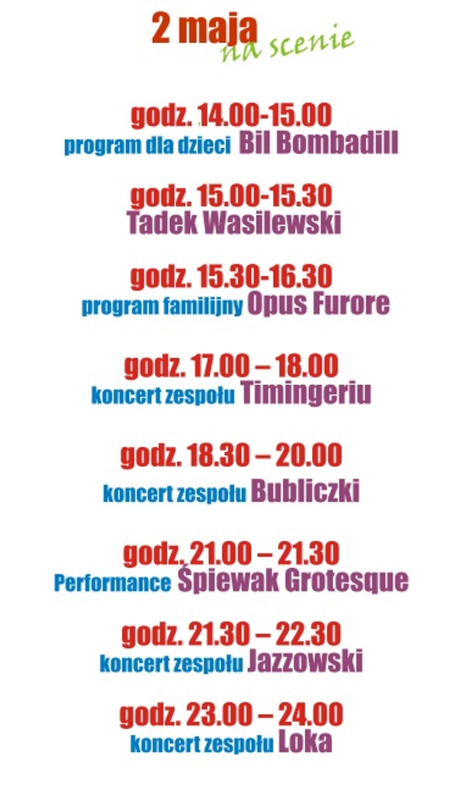 2 MAJA (sobota) - "ARTYŚCI ULICY PRZY REGALICY" - PROGRAM