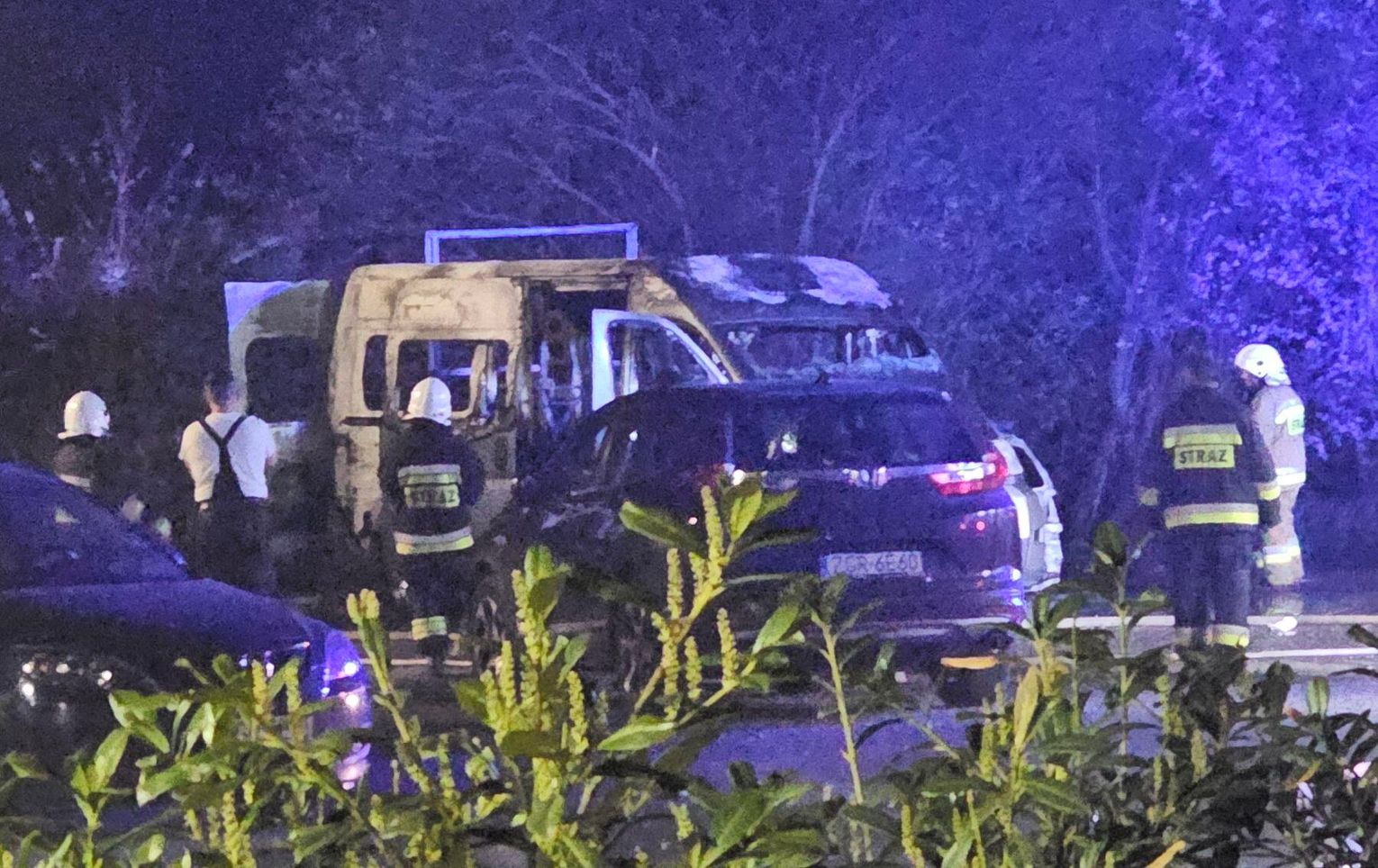 Niestety, to nie był koniec. Przed godziną 21:00 służby otrzymały kolejne dramatyczne zgłoszenie. Tym razem ogień pojawił się na parkingu przy przystanku autobusowym w Cedyni. Najpierw paliło się auto osobowe, a potem zaczął płonąć bus.