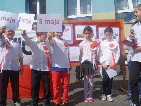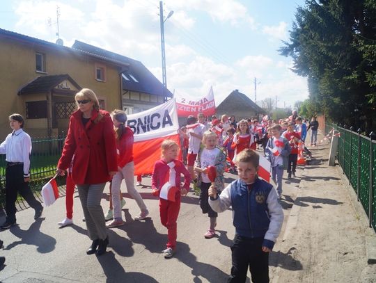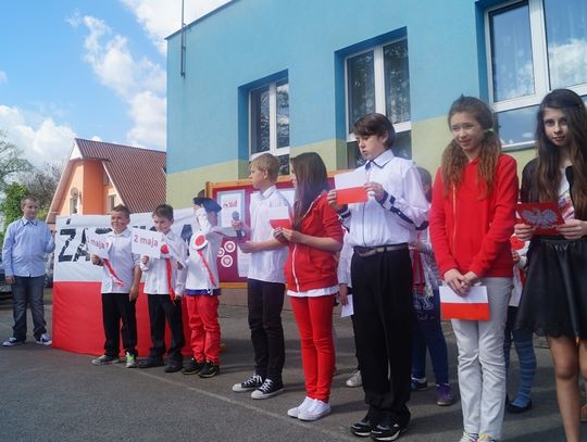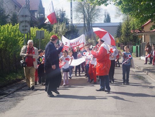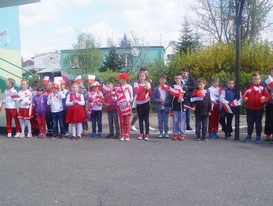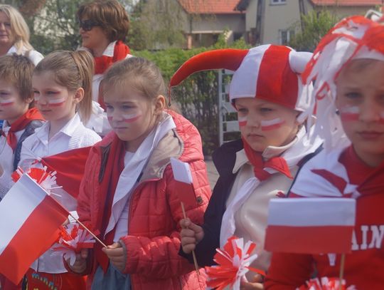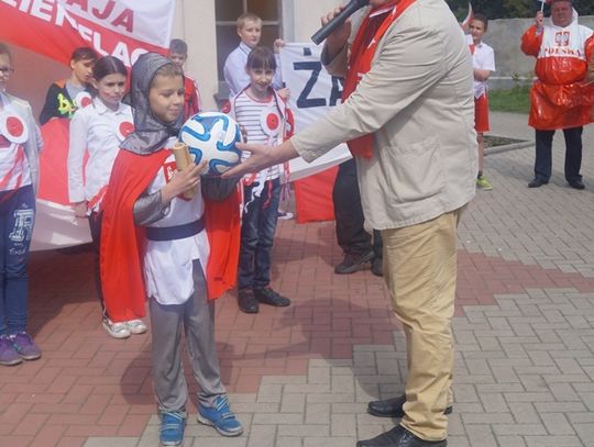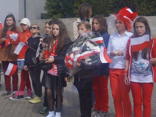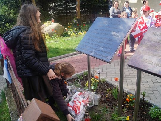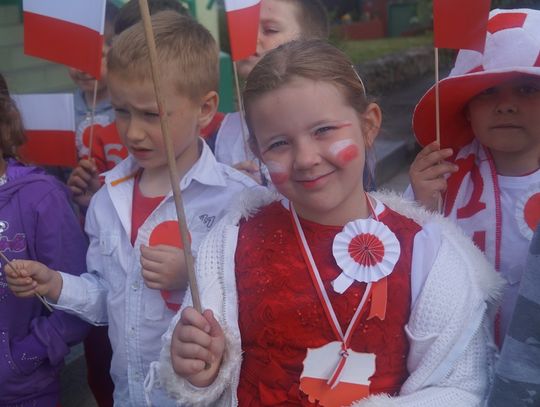 Pod parafialnym kościołem uczniowie złożyli wiązankę kwiatów oraz zapalili znicz pod pamiątkową tablicą poświęconą zmarłemu tragicznie pod Smoleńskiem wybitnemu polskiemu aktorowi znanemu z wielu wspaniałych teatralnych i filmowych ról - Januszowi Zakrzeńskiemu. Najpiękniejszy strój przygotowany na biało - czerwony korowód został nagrodzony specjalną nagrodą ufundowaną przez spółdzielnię uczniowską. Organizatorzy dziękują rodzicom za przygotowanie pięknych strojów dla dzieci, mieszkańcom za udział w tej radosnej imprezie i już zapraszają na kolejne na kolejne takie spotkanie za rok.