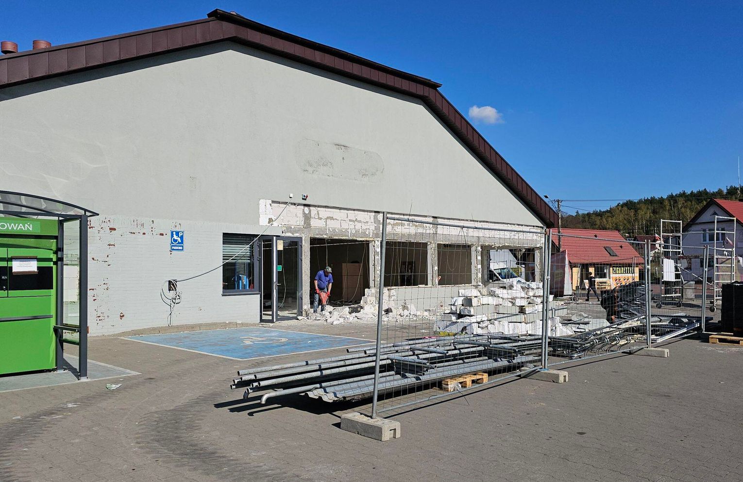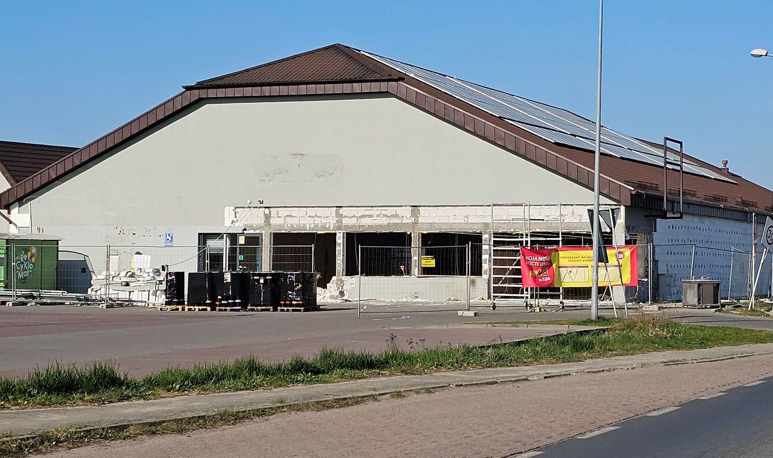 Dynamiczny rozwój handlu przygranicznego w Osinowie Dolnym sprawił, że istniejąca Biedronka szybko przestała wystarczać. Choć budynek jest stosunkowo nowy, to już drugi raz przechodzi modernizację – tym razem jednak mamy do czynienia z zakrojoną na szeroką skalę przebudową i rozbudową. Głównym motorem napędowym tych zmian jest ogromna popularność placówki wśród gości zza Odry, którzy regularnie odwiedzają ten punkt, generując wysokie zyski. Aby sprostać tak dużemu natężeniu ruchu, zdecydowano o dobudowaniu nowej części od strony północnej. Obecnie trwa kluczowy etap łączenia dotychczasowego marketu z nową konstrukcją (widać na zdjęciach w fotogalerii), co pozwoli stworzyć imponującą, jednolitą halę sprzedażową.