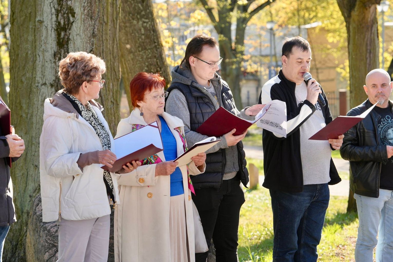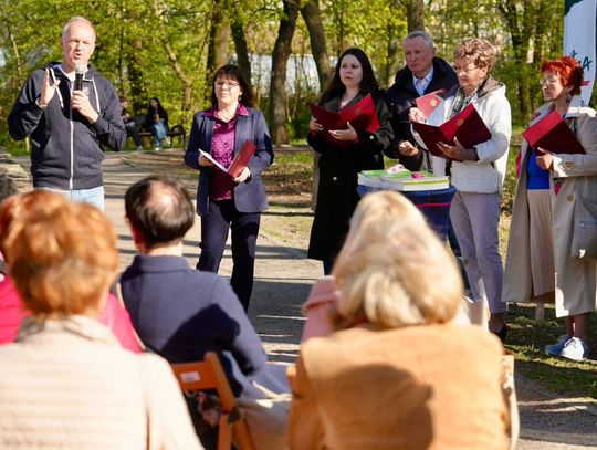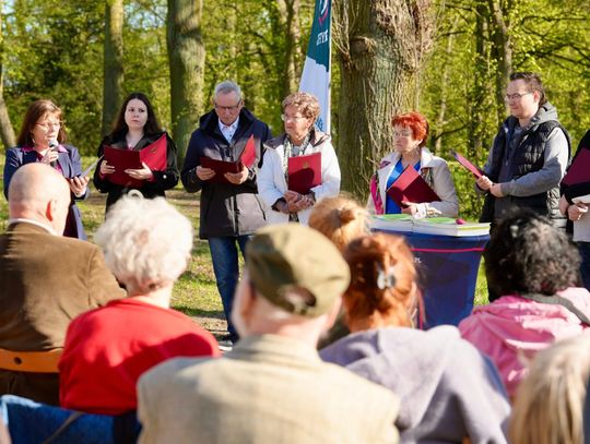 Jedno z parkowych drzew ozdobiły wiersze Pani Stanisławy, które dosłownie „wyrosły” na jego gałęziach. Każdy uczestnik mógł zerwać i zabrać ze sobą odrobinę tej lokalnej poezji do domu.