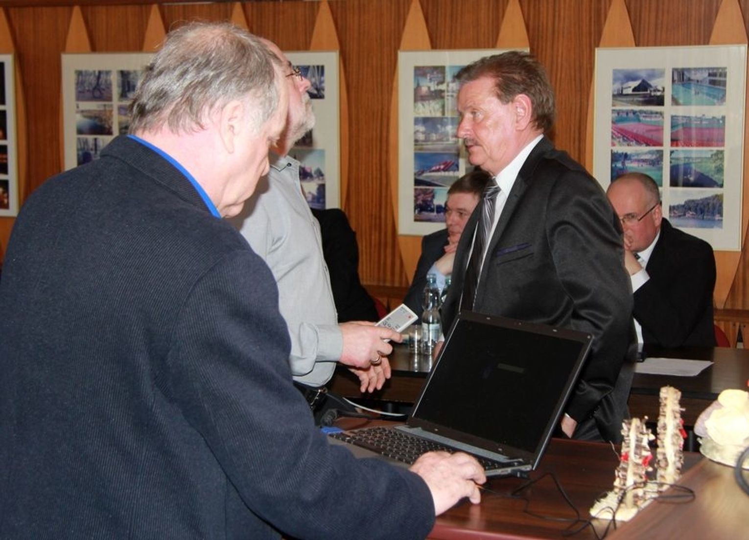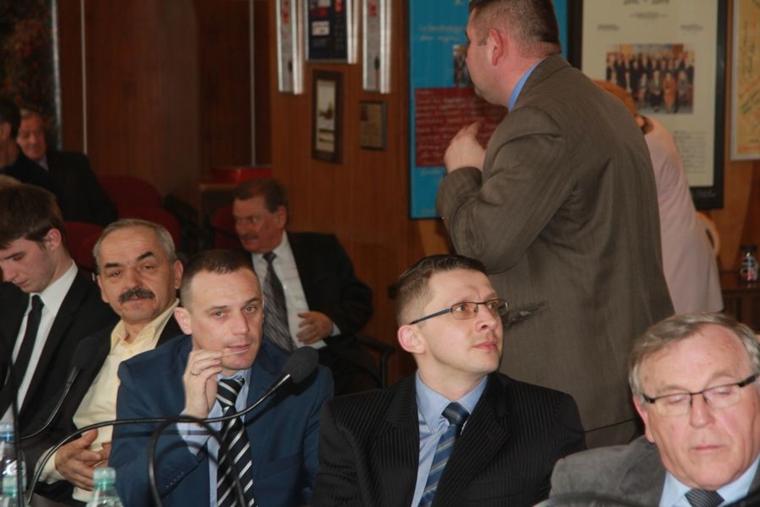 Jeszcze jedna sprawa, dotycząca tablic. Tak wyglądają obecnie. Minęły cztery miesiące i pomimo nakazu doprowadzenia tablic do stanu sprzed, kiedy zaczęło się ich używać, dwa ugrupowania tego nie zrobiły. Jest to KWW pana Rafała Muchy i KW SLD. To już nie dość, że takerami są setki zszywek powbijane z tej strony, to jeszcze nawet na odwrocie – tam, gdzie nie jest to miejsce przeznaczone i gdzie jest tak bardzo twarda powierzchnia, że pinezki nie można wbić, natomiast wiadomo, że taker wejdzie. Kto ma to teraz wyciągać i jak to wygląda? Nie mówiąc o tym jak te tablice są poniszczone. One są przy głównych drogach, to jest wizytówka naszych wsi i żebym nie wiem co robił, żebym nie wiem jak starał się o te tablice dbać, składam przy tej okazji wniosek, proszę zobaczyć co robi taker najlepiej na tym fragmencie w prawym rogu. Przynajmniej będę wnioskował o wymiany tych wkładów, ale nie wiem kto za to zapłaci. Bardzo proszę o zapisanie – cztery tablice w Gardnie, wszystkie cztery są w takim lub jeszcze gorszym stanie. Nie chcę zadrażniać już sytuacji, żeby znowu nie było, że jest jakaś nagonka na pana Rafała. To jest dowód na to, że niestety, ale plakaty tego kandydata były przybijane zszywkami, zszywaczami tapicerskimi. Tu była interwencja natychmiastowa – plakaty pana Jacka powiesili na drzewie pod kościołem, ale bardzo szybko zdjęli. Natomiast to jest m.in. człowiek, jest to pracownik PUK-u odpowiedzialny właśnie za plakatowanie tego terenu, mieszkaniec Wełtynia, którego złapałem na gorącym uczynku, jak takerem przybijał i to z drugiej strony te plakaty.