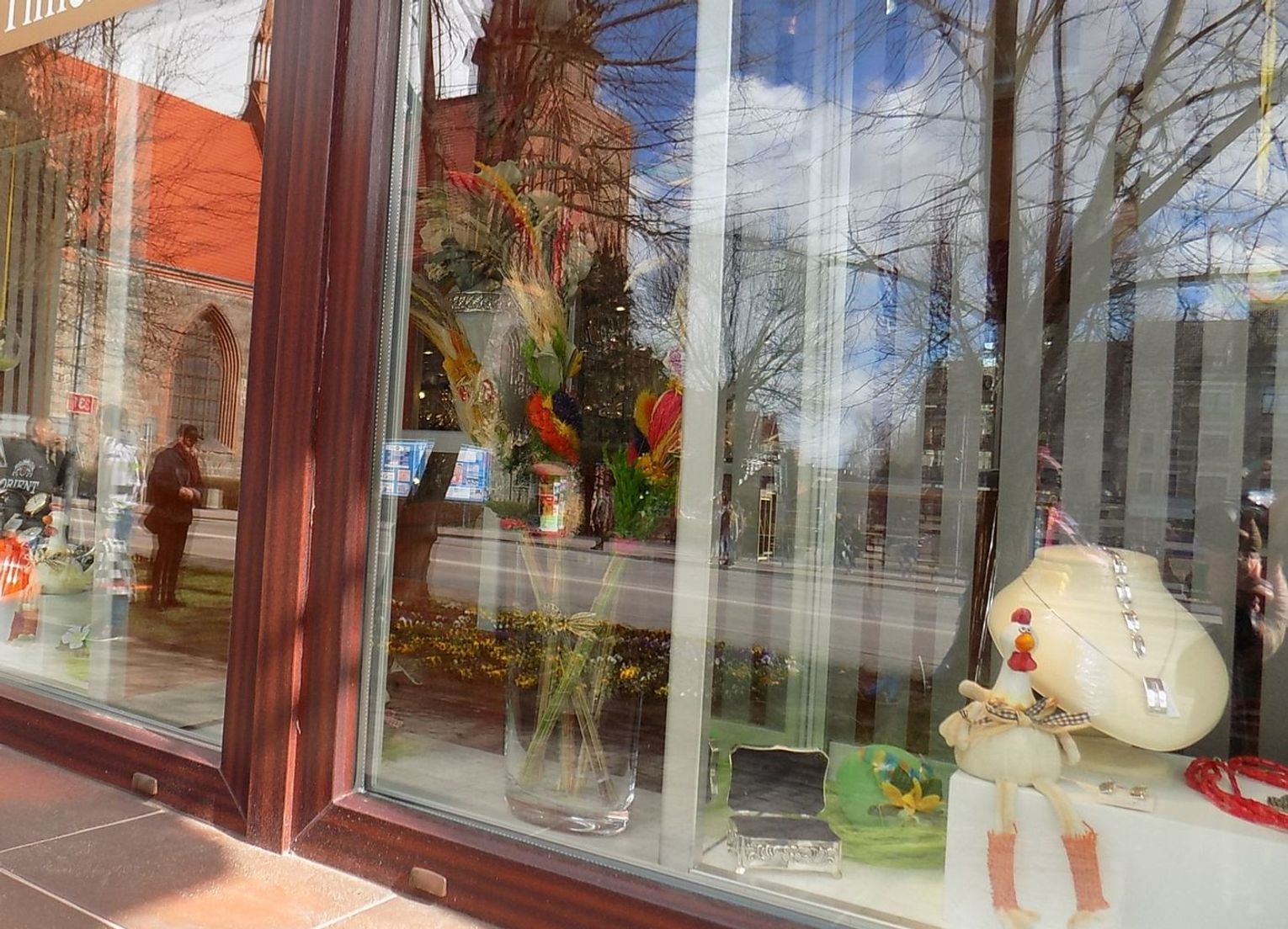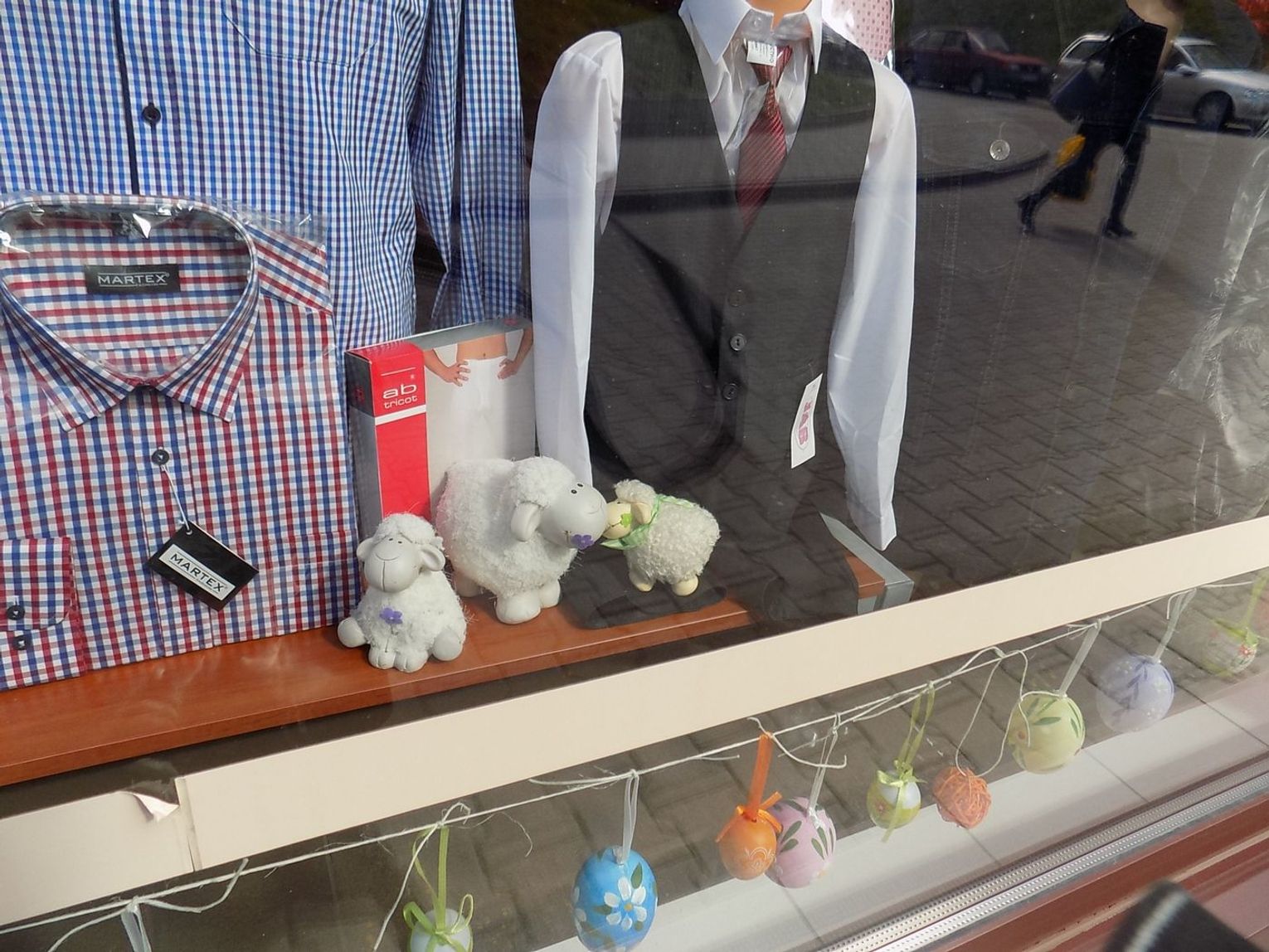 Wiele wystaw sklepowych szarych, zupełnie bez chęci i wielkanocnego pomysłu. Udało mi się jednak znaleźć na Górnym Tarasie witrynę z barankami, zajączkami i kurczakami.